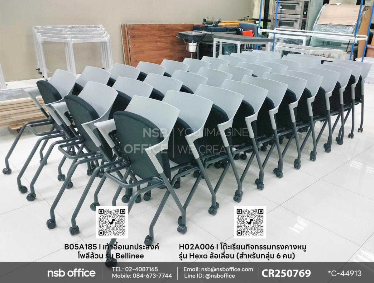 จัดส่งสินค้าถึงที่เรียบร้อยแล้วค่ะ หน้างานนี้ลูกค้าได้เลือกซื้อโต๊ะเรียนกิจกรรมทรงคางหมู รุ่น Hexa ล้อเลื่อน (สำหรับกลุ่ม 6 คน) รหัสสินค้า H02A006 หน้าท็อปสีเทาเข้ม โครงขาเหล็กพ่นสีบอร์น เสริมการใช้งานด้วยเก้าอี้อเนกประสงค์โพลีล้วน รุ่น Bellinee (เบลลินี่) รหัสสินค้า B05A185 โพลีสีเทา เบาะผ้าสีดำ มาใช้งานสำหรับหน้างานนี้ด้วยค่ะ