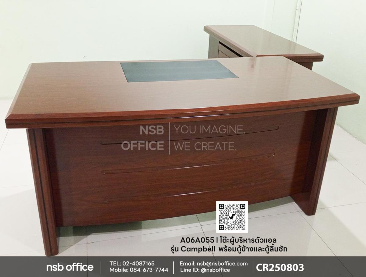 เปลี่ยนมุมทำงานของคุณให้ดูหรูหราและมีสไตล์ด้วย โต๊ะผู้บริหารตัวแอล รุ่น Campbell (แคมป์เบลล์) รหัสสินค้า A06A055 ดีไซน์ทันสมัย ที่ไม่เพียงแต่สวยงาม แต่ยังช่วยเพิ่มประสิทธิภาพในการทำงานของคุณ ด้วยฟังก์ชันที่ครบครัน มาพร้อมกับตู้ข้างและตู้ลิ้นชัก ที่ให้คุณจัดเก็บเอกสารและอุปกรณ์สำนักงานได้อย่างเป็นระเบียบ ผลิตจากวัสดุที่มีความทนทาน แข็งแรง และง่ายต่อการดูแลรักษา ไม่ว่าคุณจะเป็นผู้บริหารหรือเจ้าของธุรกิจ โต๊ะผู้บริหารตัวแอลนี้จะช่วยเสริมสร้างภาพลักษณ์ที่ดีให้กับสำนักงานของคุณ พร้อมทั้งเพิ่มความสะดวกสบายในการทำงานค่ะ