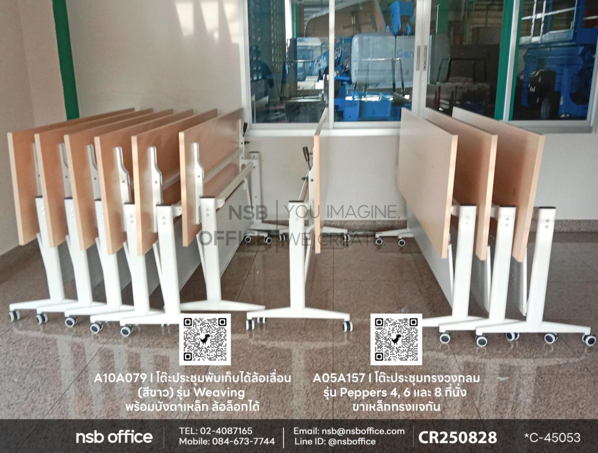 สำหรับใครที่กำลังมองหาโต๊ะประชุมไปใช้งานอยู่ ทางเราขอแนะนำเป็นโต๊ะประชุมพับเก็บได้ล้อเลื่อน (สีขาว) รุ่น Weaving (วีฟวิง) รหัสสินค้า A10A079 ที่สามารถนำมาต่อกันเป็นโต๊ะประชุมขนาดใหญ่ได้ ข้อดีของโต๊ะประชุุมรุ่นนี้คือมีล้อเลื่อน สามารถพับเก็บได้เมื่อไม่ต้องการใช้งาน หรือจะเลือกซื้อเป็นโต๊ะประชุมทรงวงกลม รุ่น Peppers รหัสสินค้า A05A157 สำหรับใช้ในการประชุมคุยงานกันเล็กๆ หรือใช้เป็นโต๊ะพักผ่อนก็ได้ค่ะ