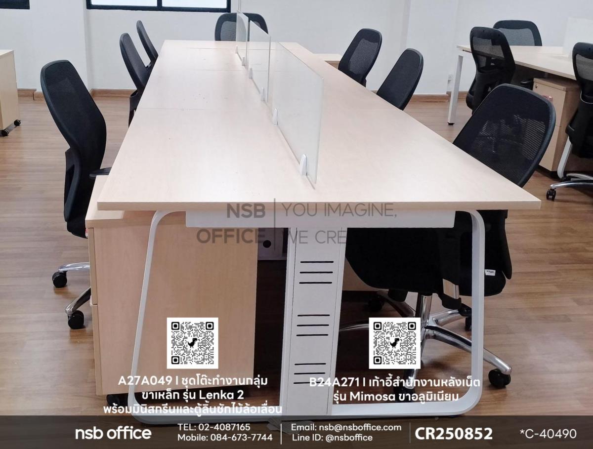 ชุดโต๊ะทำงานรุ่น Lenka 2 (เล็งกา 2) รหัสสินค้า A27A049 Top สีเมเปิ้ลล้วน โครงขาสีขาว ที่ออกแบบมาเพื่อความสะดวกสบายและประสิทธิภาพในการทำงาน ชุดโต๊ะทำงานกลุ่มขาเหล็กนี้มาพร้อมกับมินิสกรีนที่ช่วยให้คุณมีพื้นที่ทำงานที่เป็นระเบียบและเป็นส่วนตัวมากขึ้น นอกจากนี้ยังมีตู้ลิ้นชักไม้ล้อเลื่อนที่สามารถเคลื่อนย้ายได้ง่าย ช่วยให้คุณจัดเก็บเอกสารและอุปกรณ์ต่างๆ ได้อย่างสะดวก ใช้งานคู่กับเก้าอี้สำนักงานหลังเน็ตรุ่น Mimosa (มิโมซา) รหัสสินค้า B24A271 ที่ออกแบบมาเพื่อรองรับการนั่งทำงานในระยะยาวอย่างมีประสิทธิภาพ คุณจะได้เห็นการจัดวางที่เหมาะสมและการใช้งานจริงในสภาพแวดล้อมการทำงานค่ะ