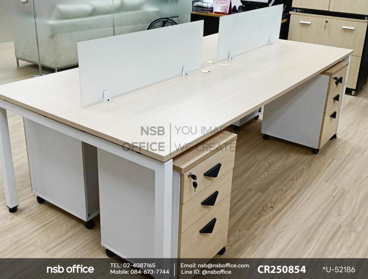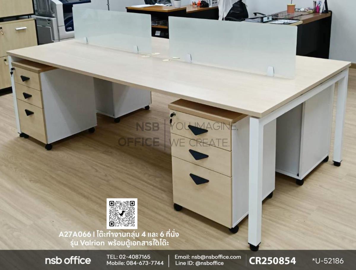 สร้างพื้นที่ทำงานที่มีประสิทธิภาพและสะดวกสบายด้วยโต๊ะทำงานกลุ่ม 4 ที่นั่งรุ่น Valrion (วาเรียน) รหัสสินค้า A27A066 ของเรา ออกแบบมาเพื่อรองรับการทำงานร่วมกันในทีม ขนาดมินิสกรีนต่อที่นั่ง 100W*30H cm.เพิ่มความเป็นส่วนตัวในการทำงานได้อีกระดับนึง โต๊ะนี้จะมาพร้อมกับตู้เอกสารใต้โต๊ะที่ช่วยให้คุณจัดเก็บเอกสารและอุปกรณ์ต่างๆ ได้อย่างเป็นระเบียบค่ะ