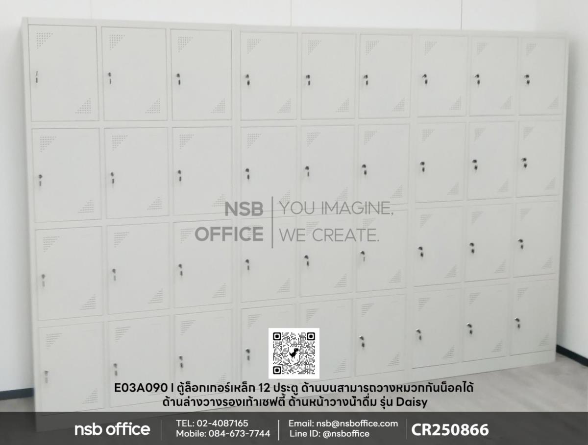 จัดส่งสินค้าเรียบร้อยแล้วค่ะ หน้างานนี้ลูกค้าได้เลือกซื้อตู้ล็อกเกอร์เหล็ก 12 ประตู ด้านบนสามารถวางหมวกกันน็อคได้ ด้านล่างวางรองเท้าเซฟตี้ ด้านหน้าวางน้ำดื่ม รุ่น Daisy (เดซี่) รหัสสินค้า E03A090 ผลิตจากเหล็กคุณภาพดี แข็งแรงทนทาน สามารถใช้งานได้ยาวนาน ไม่ต้องกังวลเรื่องการสึกหรอหรือการเสียหายค่ะ
