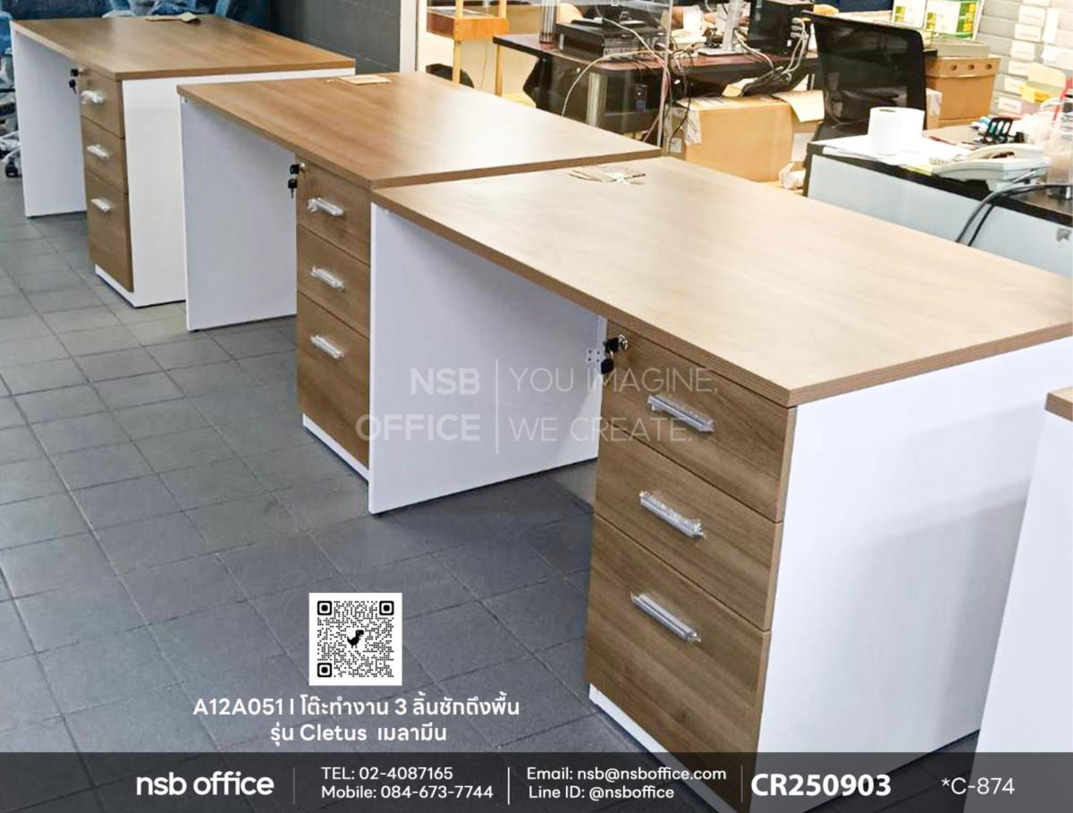 หน้างานนี้ลูกค้าได้เลือกซื้อโต๊ะทำงาน 3 ลิ้นชักถึงพื้น รุ่น Cletus (เคลตัส) รหัสสินค้า A12A051 เมลามีน ออกแบบมาเพื่อให้คุณมีพื้นที่ทำงานที่เป็นระเบียบและสะดวกสบาย ลิ้นชักทั้งสามช่วยให้คุณจัดเก็บเอกสารและอุปกรณ์ต่างๆ ได้อย่างมีระเบียบ ไม่ต้องกังวลเรื่องความยุ่งเหยิงอีกต่อไป ดีไซน์ทันสมัย เข้ากับทุกสไตล์การตกแต่ง ช่วยให้คุณทำงานได้อย่างมีประสิทธิภาพ ไม่ว่าคุณจะทำงานที่บ้านหรือในสำนักงาน โต๊ะทำงาน 3 ลิ้นชักถึงพื้นจะเป็นเพื่อนคู่ใจที่ช่วยให้คุณทำงานได้อย่างราบรื่นแน่นอนค่ะ