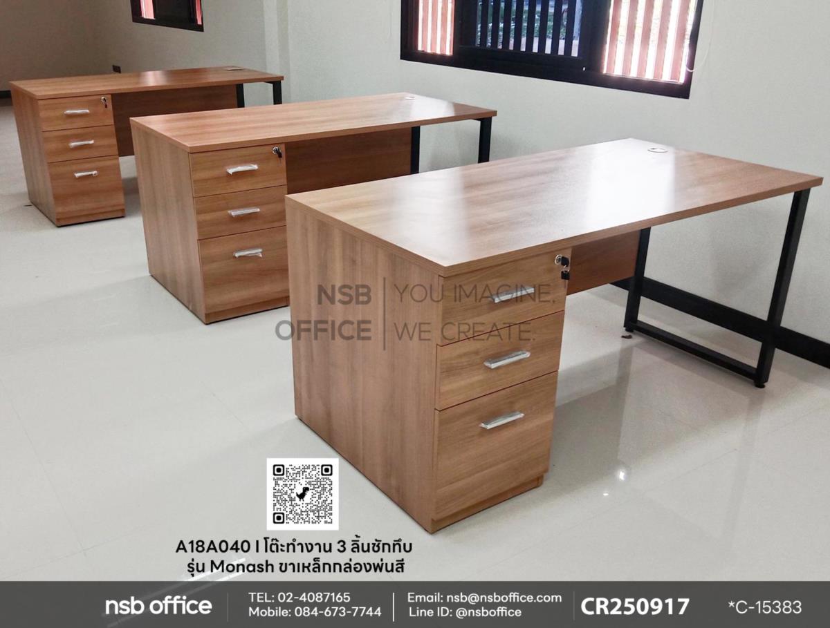 จัดส่งสินค้าเรียบร้อยแล้วค่ะ หน้างานนี้ลูกค้าได้เลือกซื้อโต๊ะทำงาน 3 ลิ้นชักทึบ รุ่น Monash (โมนาช) รหัสสินค้า A18A040 ขาเหล็กกล่องพ่นสี ลิ้นชัก 3 ช่องช่วยให้คุณจัดระเบียบเอกสารและอุปกรณ์ต่างๆ ได้อย่างมีระเบียบ โครงขาเหล็กกล่องพ่นสีทำให้โต๊ะมีความทนทานและมั่นคง รองรับน้ำหนักได้ดีไม่ว่าคุณจะทำงานที่บ้านหรือในสำนักงาน โต๊ะทำงานนี้จะช่วยเพิ่มประสิทธิภาพในการทำงานของคุณได้อย่างแน่นอนค่ะ