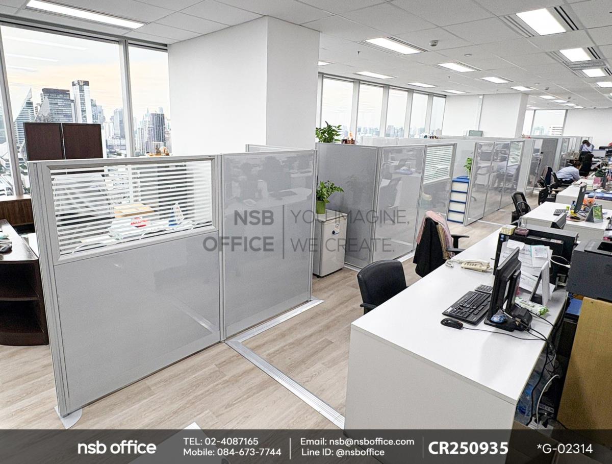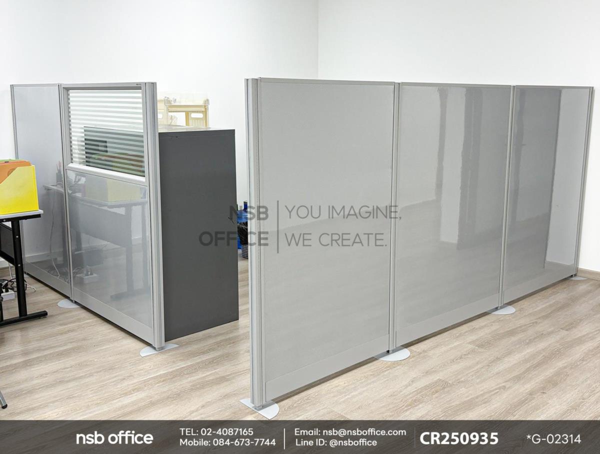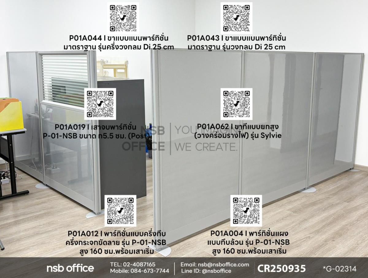 หน้างานนี้เป็นโซนสำนักงาน ลูกค้าได้เลือกซื้อพาร์ทิชั่นแบบครึ่งทึบครึ่งกระจกขัดลาย รุ่น P-01-NSB รหัสสินค้า P01A012 และ พาร์ทิชั่นแผงแบบทึบล้วน รุ่น P-01-NSB รหัสสินค้า P01A004 ไปใช้สำหรับกั้นเพิ่มความเป็นส่วนตัวภายในสำนักงาน เหมาะสำหรับการแบ่งโซนทำงานในออฟฟิศหรือพื้นที่ที่ต้องการความโปร่งสบาย พาร์ทิชั่นของเราจะช่วยเพิ่มประสิทธิภาพในการทำงานและสร้างบรรยากาศที่ดีให้กับทีมงานของคุณค่ะ