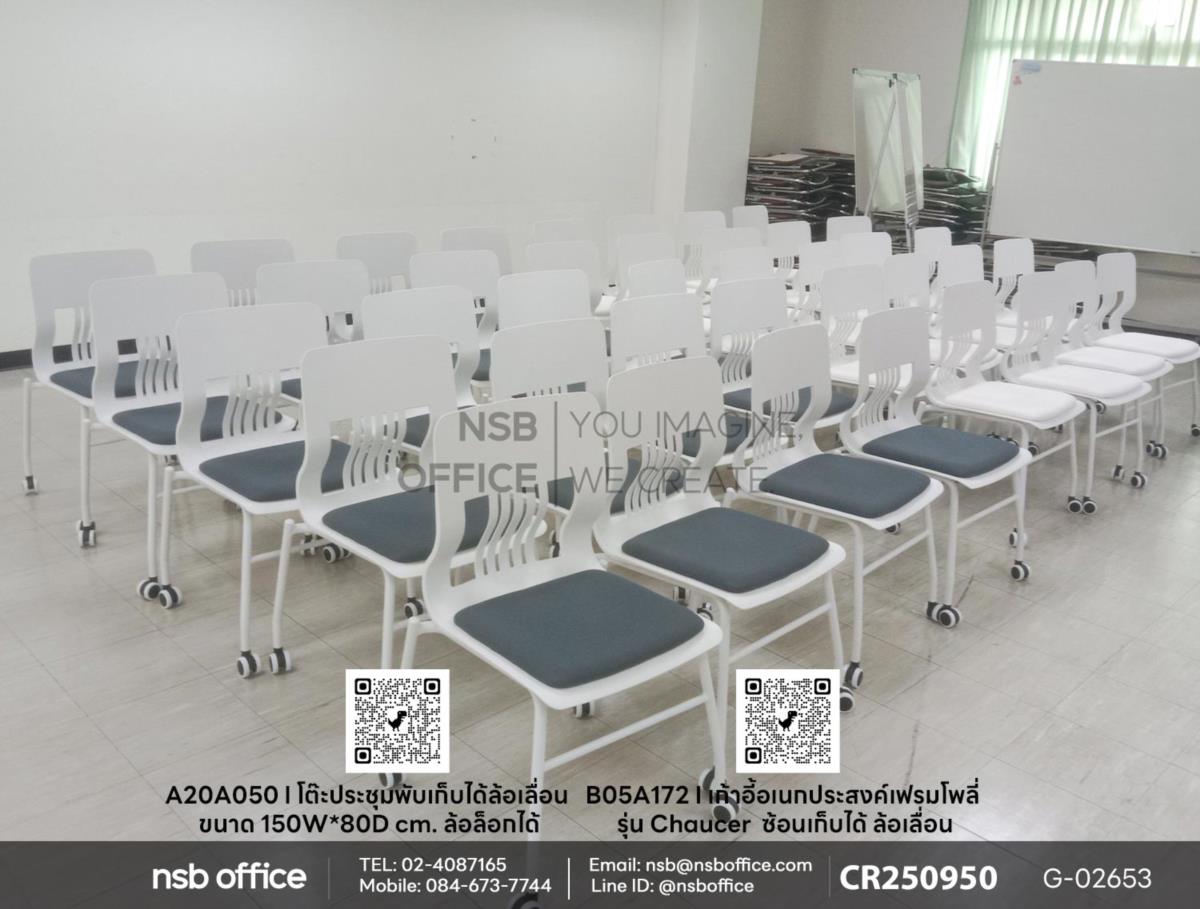 หากคุณกำลังมองหาโต๊ะประชุมที่ตอบโจทย์การใช้งานที่หลากหลาย โต๊ะประชุมพับเก็บได้ล้อเลื่อน รหัสสินค้า A20A050 ของเราเป็นตัวเลือกที่เหมาะสมที่สุด ด้วยดีไซน์ที่ทันสมัยและฟังก์ชันการใช้งานที่สะดวกสบาย โต๊ะนี้สามารถพับเก็บได้ง่าย ทำให้คุณประหยัดพื้นที่เมื่อไม่ใช้งาน ล้อล็อกได้เพื่อความมั่นคง ช่วยให้คุณเคลื่อนย้ายโต๊ะไปยังสถานที่ต่างๆ ได้อย่างสะดวกสบายเสริมการใช้งานด้วยเก้าอี้อเนกประสงค์ รหัสสินค้า รุ่น Chaucer (ชอเซอร์) รหัสสินค้า B05A172 เพื่อเพิ่มความสะดวกสบายในการประชุม น้ำหนักเบาและทนทาน สามารถใช้งานได้หลากหลายรูปแบบ ไม่ว่าจะเป็นการประชุม การสัมมนา หรือกิจกรรมต่างๆค่ะ