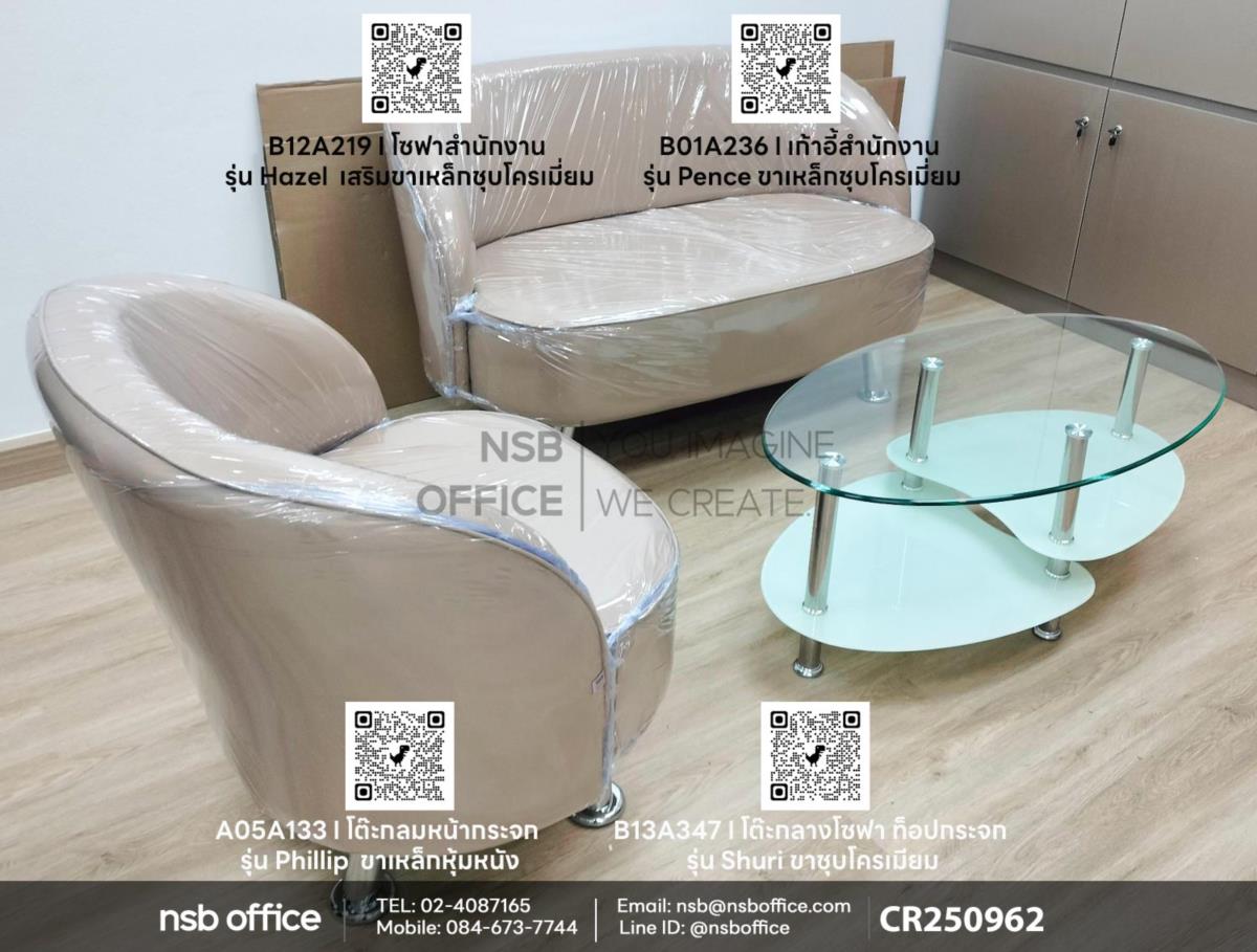 สร้างบรรยากาศการทำงานที่ทันสมัยและมีสไตล์ด้วยชุดโซฟาสำนักงานรุ่น Hazel (ฮาเซล) รหัสสินค้า B12A219 เสริมโต๊ะหน้ากระจกรุ่น Shuri (ชูริ) รหัสสินค้า B13A347 และรุ่น Phillip (ฟิลลิป) รหัสสินค้า A05A133 ของเรา ชุดโซฟาที่ออกแบบมาเพื่อความสะดวกสบายและความสวยงาม เหมาะสำหรับสำนักงานหรือพื้นที่ทำงานที่ต้องการความเป็นมืออาชีพ โซฟานั่งสบาย รองรับการทำงานเป็นเวลานานไม่ว่าคุณจะทำงานที่บ้านหรือในสำนักงาน ชุดโซฟานี้จะช่วยเพิ่มประสิทธิภาพในการทำงานและสร้างบรรยากาศที่ดีให้กับคุณค่ะ
