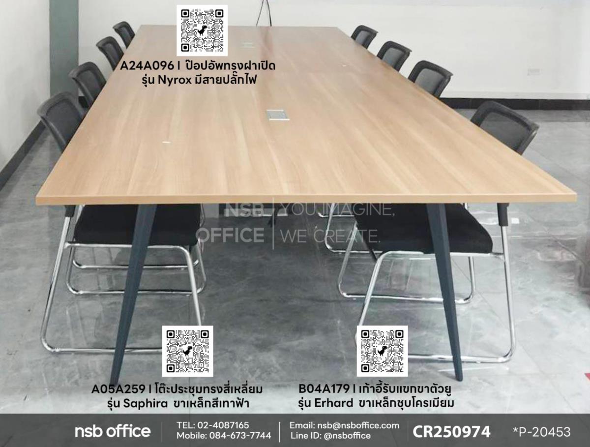 เพิ่มประสิทธิภาพในการประชุมของคุณด้วยโต๊ะประชุมทรงสี่เหลี่ยมรุ่น Saphira (ซาฟิร่า) รหัสสินค้า A05A259 ที่ออกแบบมาเพื่อความสะดวกสบายและการใช้งานที่หลากหลาย เสริมด้วยป๊อปอัพทรงฝาเปิด A05A259 มาพร้อมสายไฟ ที่ช่วยให้คุณสามารถเชื่อมต่ออุปกรณ์ต่าง ๆ ได้อย่างง่ายดาย ไม่ว่าจะเป็นการนำเสนอข้อมูลหรือการประชุมออนไลน์ โต๊ะนี้ตอบโจทย์ทุกความต้องการของคุณใช้งานคู่กับเก้าอี้รับแขกขาตัวยู เพื่อความลงตัวในการประชุม โต๊ะประชุมนี้เหมาะอย่างยิ่งเมื่อใช้งานคู่กับเก้าอี้รับแขกขาตัวยู รุ่น Erhard (เออร์ฮาร์ด) รหัสสินค้า B04A179 ที่มีดีไซน์ทันสมัยและให้ความสบายในการนั่ง ทำให้ทุกการประชุมเป็นไปอย่างราบรื่นและมีประสิทธิภาพค่ะ