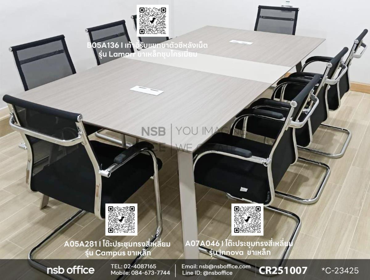 สร้างบรรยากาศการทำงานที่มีประสิทธิภาพด้วยโต๊ะประชุมขาเหล็กรุ่น Campus (แคมปัส) รหัสสินค้า A05A281 และรุ่น Innova (อินโนวา) รหัสสินค้า A07A046 ที่แข็งแรงและทนทาน พร้อมเก้าอี้รับแขกขาตัวซีที่ออกแบบมาเพื่อความสะดวกสบายและสไตล์ที่ทันสมัย เสริมการใช้งานด้วยเก้าอี้รับแขกขาตัวซีที่มีหลังเน็ต B05A136 ช่วยให้การนั่งทำงานเป็นไปอย่างสบาย ดีไซน์ที่เข้ากับทุกสภาพแวดล้อมการทำงานไม่ว่าคุณจะจัดประชุมหรือรับแขก โต๊ะและเก้าอี้ชุดนี้จะช่วยเสริมสร้างภาพลักษณ์ที่ดีให้กับองค์กรของคุณค่ะ
