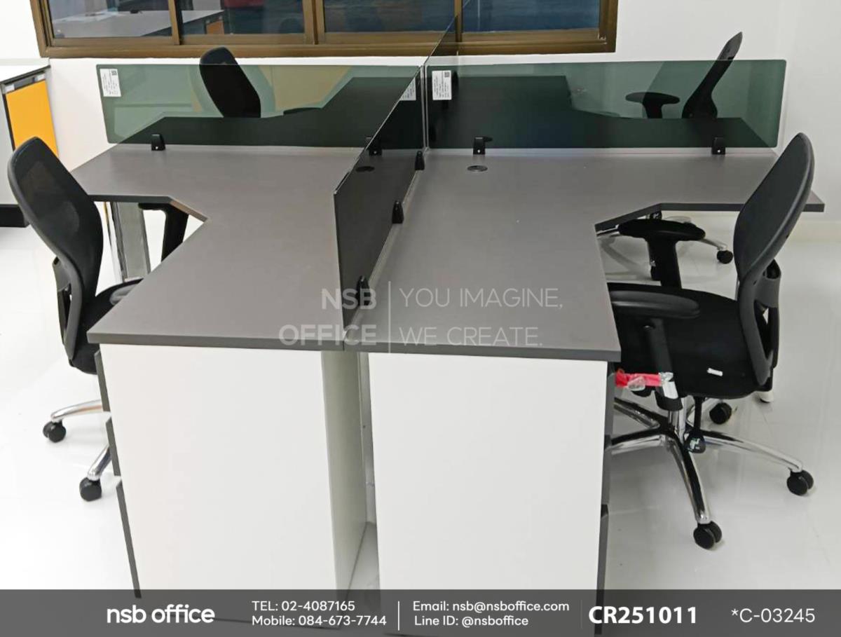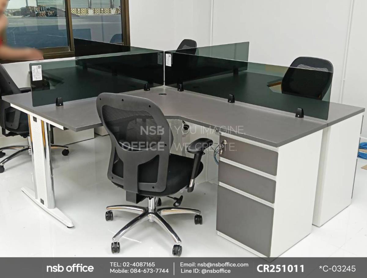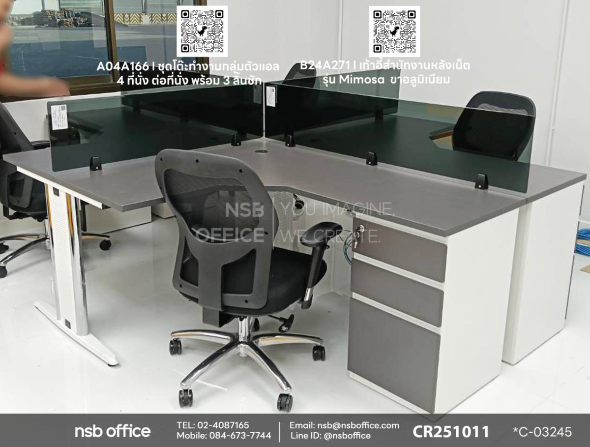 สร้างสรรค์พื้นที่ทำงานที่มีประสิทธิภาพด้วยชุดโต๊ะทำงานกลุ่มตัวแอล 4 ที่นั่ง รหัสสินค้า A04A166 ที่ออกแบบมาเพื่อรองรับการทำงานร่วมกันอย่างลงตัว ไม่ว่าจะเป็นการประชุมหรือการทำงานเป็นทีม ชุดโต๊ะนี้ช่วยให้คุณและทีมงานสามารถแลกเปลี่ยนความคิดเห็นได้อย่างสะดวกสบาย รูปทรงตัวแอลที่ช่วยประหยัดพื้นที่และเพิ่มความสวยงามให้กับสำนักงาน ใช้งานคู่กับเก้าอี้สำนักงานหลังเน็ตรุ่น Mimosa (มิโมซา) รหัสสินค้า B24A271 ที่ออกแบบมาเพื่อรองรับการนั่งทำงานในระยะยาวค่ะ