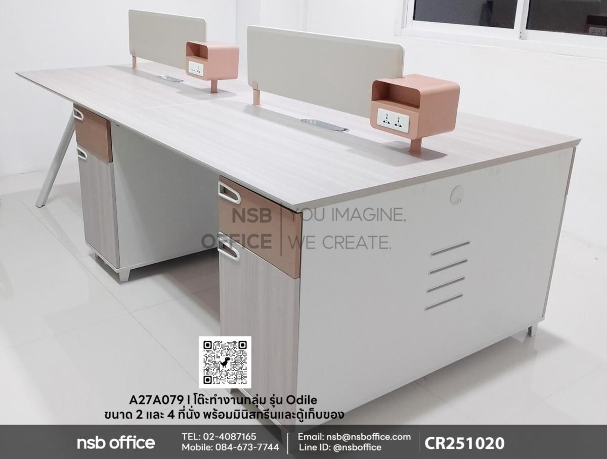สร้างสรรค์พื้นที่ทำงานที่ตอบโจทย์ทุกความต้องการของคุณด้วยโต๊ะทำงานกลุ่มขนาด 2 และ 4 ที่นั่งรุ่น Odile (โอดีล) รหัสสินค้า A10A158ที่มาพร้อมกับมินิสกรีนเพื่อความเป็นส่วนตัวและตู้เก็บของที่ช่วยให้คุณจัดระเบียบได้อย่างมีประสิทธิภาพ โต๊ะทำงานที่ออกแบบมาเพื่อให้เหมาะกับทุกสไตล์การทำงาน เสริมมินิสกรีนช่วยเพิ่มความเป็นส่วนตัวในขณะทำงานร่วมกับผู้อื่น และเพิ่มพื้นที่จัดเก็บให้คุณสามารถเก็บเอกสารและอุปกรณ์ต่างๆ ได้อย่างเป็นระเบียบไม่ว่าคุณจะทำงานในออฟฟิศหรือที่บ้าน โต๊ะทำงานกลุ่มนี้จะช่วยให้คุณมีพื้นที่ทำงานที่สะดวกสบายและมีประสิทธิภาพมากยิ่งขึ้นค่ะ