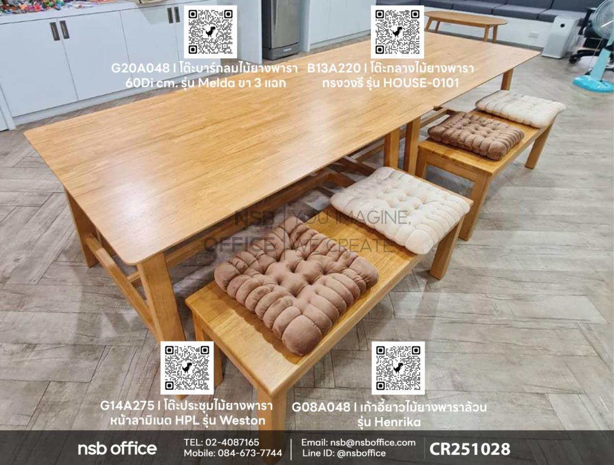 หน้างานนี้ลูกค้าได้เลือกซื้อโต๊ะประชุมไม้ยางพารา หน้าลามิเนต HPL รุ่น Weston (เวสตัน) รหัสสินค้า G14A275 เสริมการใช้งานด้วยเก้าอี้ยาวไม้ยางพาราล้วน รุ่น Henrika (เฮนริก้า) รหัสสินค้า G08A048 สร้างบรรยากาศการทำงานที่มีประสิทธิภาพและความสะดวกสบายและความสวยงามในสำนักงานของคุณ โต๊ะประชุมนี้ไม่เพียงแต่มีความทนทาน แต่ยังให้ความรู้สึกอบอุ่นและเป็นธรรมชาติ เหมาะสำหรับการประชุมที่ต้องการการสื่อสารที่มีประสิทธิภาพค่ะ