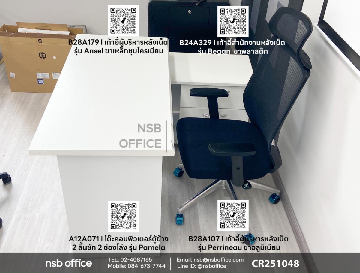 หากคุณกำลังมองหาชุดโต๊ะทำงานที่ตอบโจทย์ทั้งความสวยงามและการใช้งาน โต๊ะทำงานพร้อมตู้ข้างรุ่น Pamela (พาเมลา) รหัสสินค้า A12A071 ของเราเป็นตัวเลือกที่เหมาะสมที่สุด ด้วยดีไซน์ที่ทันสมัยและฟังก์ชันการใช้งานที่ครบครัน คุณจะสามารถจัดเก็บเอกสารและอุปกรณ์ต่างๆ ได้อย่างเป็นระเบียบ เสริมการทำงานของคุณให้มีประสิทธิภาพมากยิ่งขึ้นด้วยเก้าอี้ผู้บริหารหลังเน็ตที่ออกแบบมาเพื่อรองรับสรีระของผู้ใช้งาน ช่วยให้คุณนั่งทำงานได้นานโดยไม่รู้สึกเมื่อยล้าค่ะ