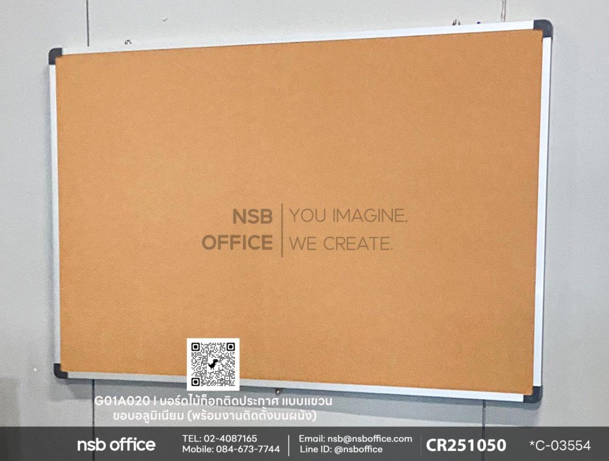 หน้างานนี้ลูกค้าได้เลือกซื้อบอร์ดไม้ก็อกติดประกาศ แบบแขวน ขอบอลูมิเนียม (พร้อมงานติดตั้งบนผนัง) รหัสสินค้า G01A020 ข้อดีของบอร์ดไม้ก๊อกคือเหมาะสำหรับใช้ติดกระดาษโน้ด รูปภาพ เอกสารสำคัญ ติดประกาศ หรือจัดบอร์ดนิทรรศการต่างๆ จะทำให้คุณไม่พลาดทุกเรื่องราวสำคัญ และช่วยเตือนความจำได้อย่างดีเยี่ยมค่ะ