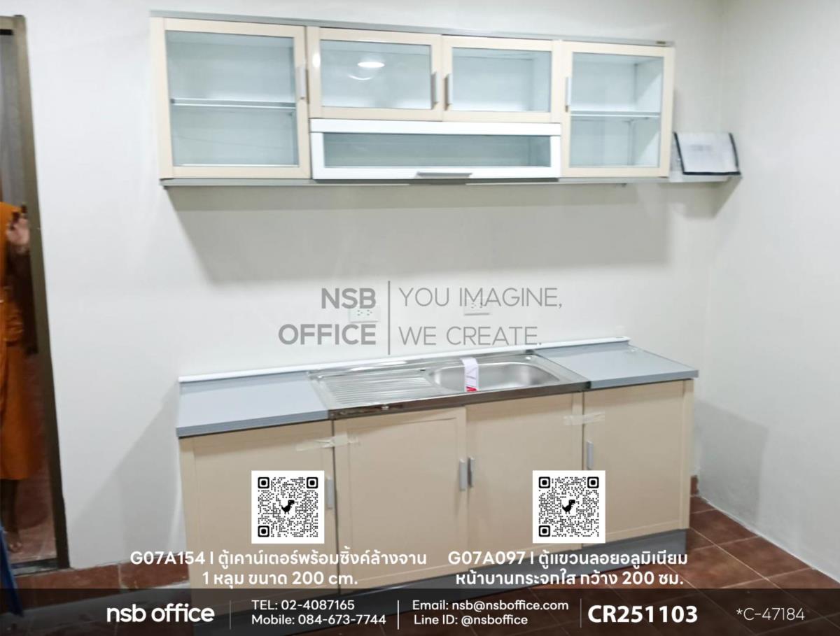 หน้างานนี้เป็นโซนห้องครัว ลูกค้าได้เลือกซื้อตู้เคาน์เตอร์พร้อมซิ้งค์ล้างจาน รหัสสินค้า G07A154 รุ่นนี้จะมาพร้อมกับซิ้งค์ล้างจาน 1 หลุม เสริมการใช้งานด้วยตู้แขวนลอยอลูมิเนียม หน้าบานกระจกใส รหัสสินค้า G07A097 ด้วยวัสดุอลูมิเนียมคุณภาพสูง ตู้แขวนลอยช่วยเพิ่มพื้นที่ใช้สอยในครัวของคุณได้อย่างมีประสิทธิภาพ ไม่เพียงแต่สวยงาม แต่ยังทนทานต่อการใช้งานในระยะยาว ซิ้งค์ล้างจานที่ออกแบบมาอย่างลงตัวช่วยให้การทำความสะอาดเป็นเรื่องง่ายและสะดวกสบาย ไม่ว่าคุณจะทำอาหารหรือจัดเตรียมอาหาร ตู้เคาน์เตอร์นี้จะช่วยให้คุณทำงานได้อย่างมีประสิทธิภาพมากยิ่งขึ้น พร้อมทั้งเพิ่มความสวยงามให้กับพื้นที่ครัวของคุณค่ะ