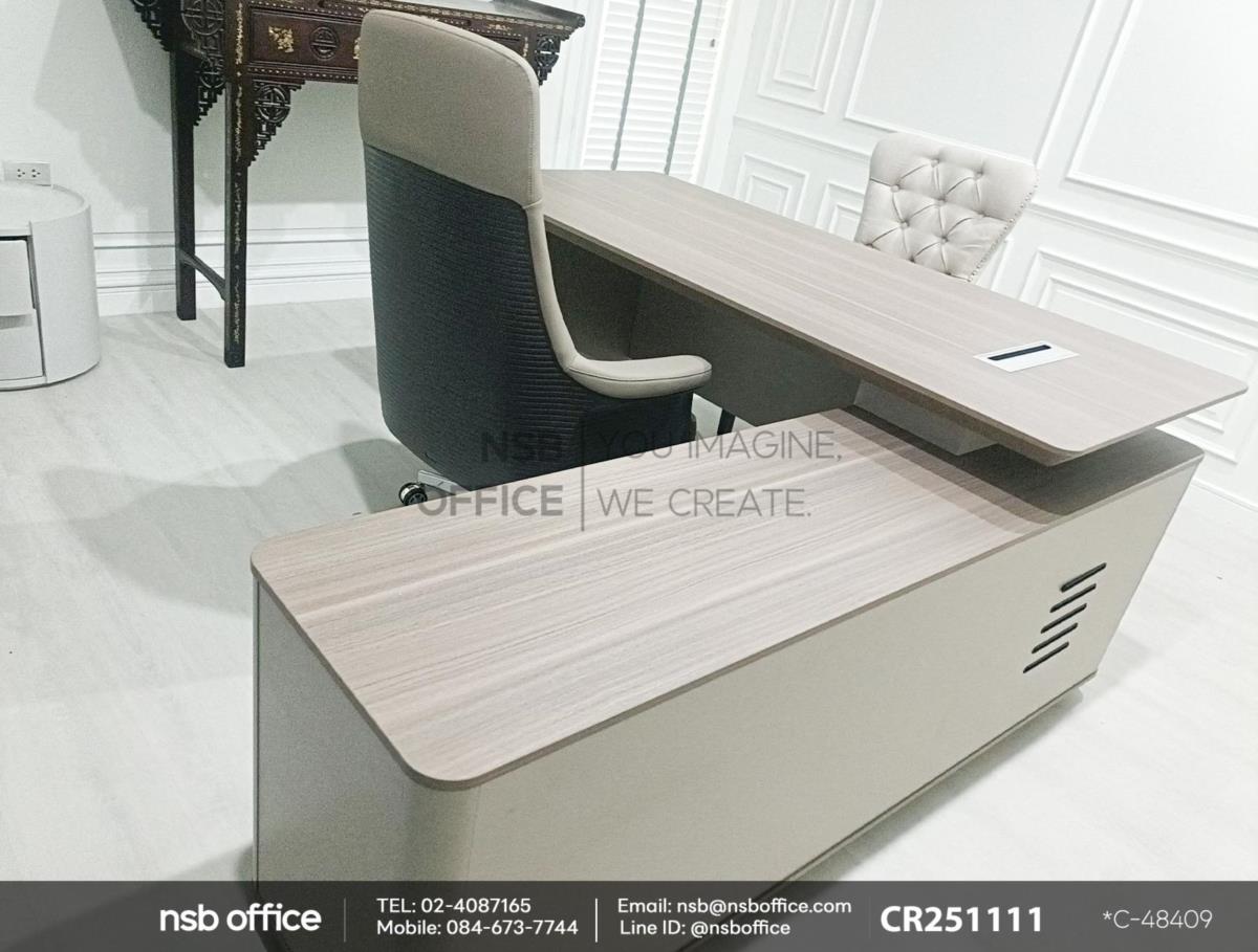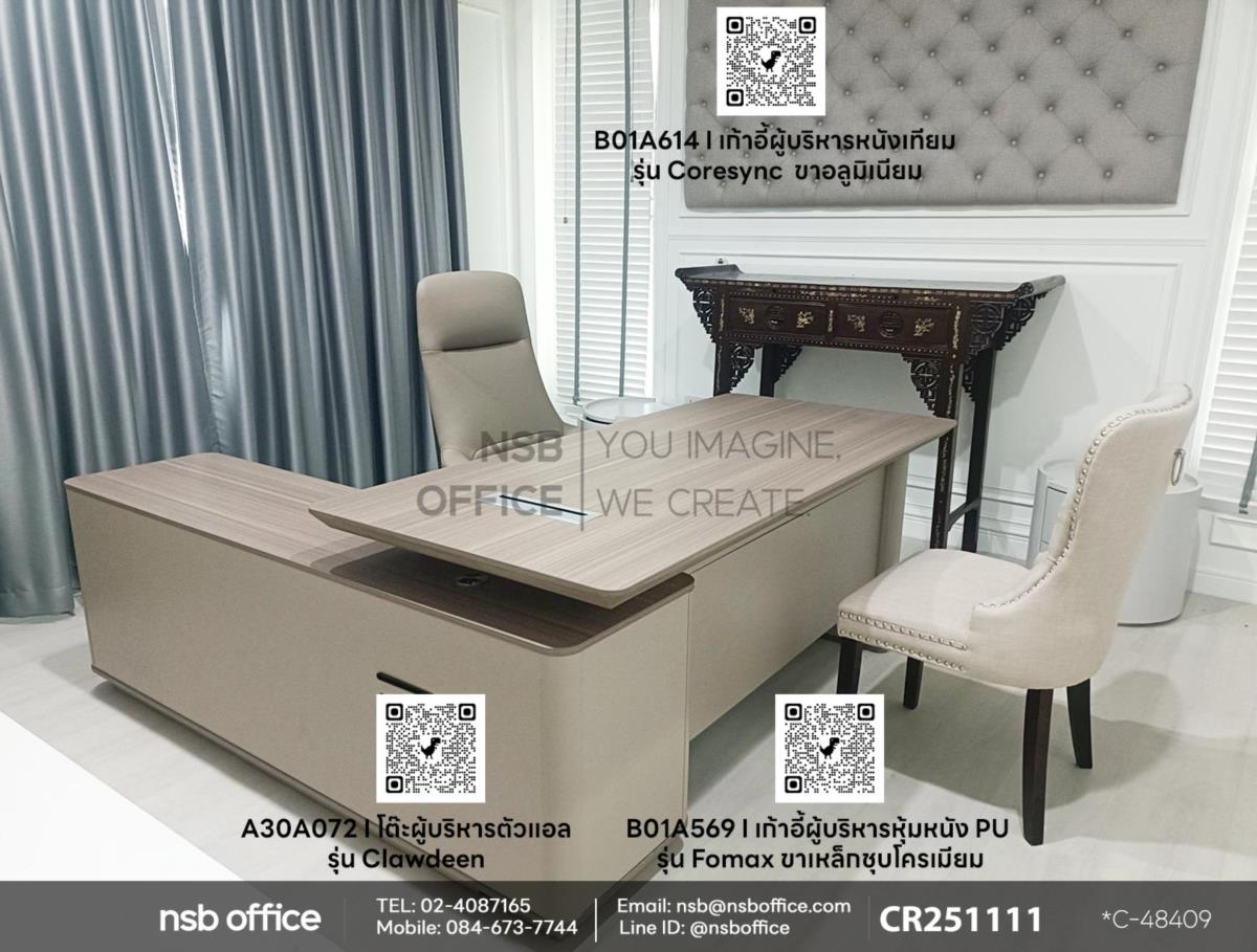 หน้างานนี้เป็นโซนห้องผู้บริหาร ลูกค้าได้เลือกซื้อโต๊ะผู้บริหารตัวแอล รุ่น Clawdeen (คลาวดีน) รหัสสินค้า A30A072 ไปใช้กับเก้าอี้ผู้บริหารหุ้มหนัง PU รุ่น Fomax (โฟแม็กซ์) รหัสสินค้า B01A569 และเก้าอี้ผู้บริหารหนังเทียม รุ่น Coresync (คอร์ซิงค์) รหัสสินค้า B01A614 นำมาใช้คู่กันแล้วเพิ่มความสวยงาม และบรรยากาศภายในห้องให้ลงตัวมากๆค่ะ