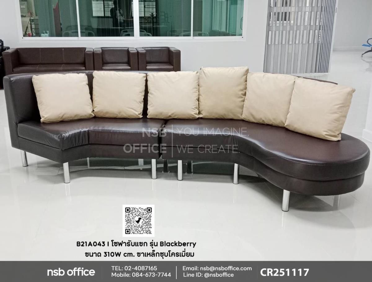 จัดส่งสินค้าเรียบร้อยแล้วค่ะ หน้างานนี้ลูกค้าได้เลือกซื้อโซฟารับแขก รุ่น Blackberry (แบล็กเบอร์รี่) รหัสสินค้า B21A043 ขนาด 310W cm. ขาเหล็กชุบโครเมี่ยม ไปใช้ภายในสำนักงาน ข้อดีของโซฟารุ่นนี้คือสามารถรองรับแขกได้หลายคน ไม่ว่าคุณจะใช้ในบ้านหรือสำนักงาน โซฟารับแขกนี้จะช่วยสร้างบรรยากาศที่อบอุ่นและน่าเชิญชวนให้กับผู้มาเยือนแน่นอนค่ะ