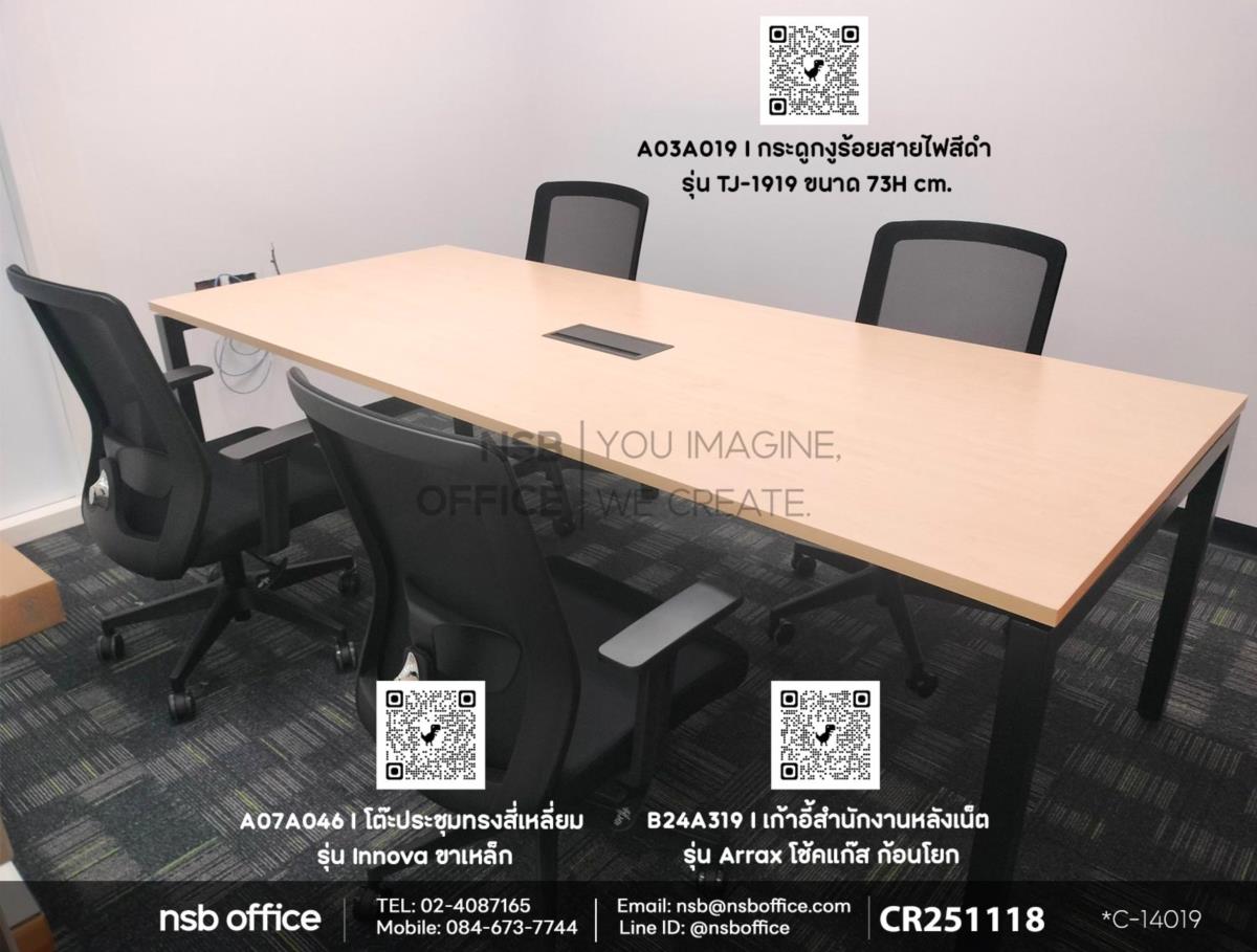 สำหรับหน้างานนี้เป็นโซนโต๊ะประชุม ลูกค้าได้เลือกซื้อโต๊ะประชุมทรงสี่เหลี่ยม รุ่น Innova (อินโนวา) รหัสสินค้า A07A046 เสริมการใช้งานด้วยกระดูกงูร้อยสายไฟสีดำ รุ่น TJ-1919 รหัสสินค้า A03A019 และเก้าอี้สำนักงานหลังเน็ต รุ่น Arrax (อาแรกซ์) รหัสสินค้า B24A319 ไม่ว่าคุณจะมีการประชุมขนาดเล็กหรือใหญ่ โต๊ะประชุมทรงสี่เหลี่ยมสามารถรองรับผู้เข้าร่วมได้อย่างเหมาะสม พร้อมทั้งสร้างบรรยากาศที่เป็นกันเองและกระตุ้นให้เกิดการแลกเปลี่ยนความคิดเห็นอย่างสร้างสรรค์ค่ะ