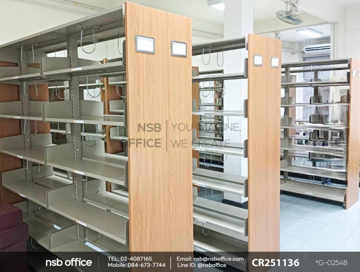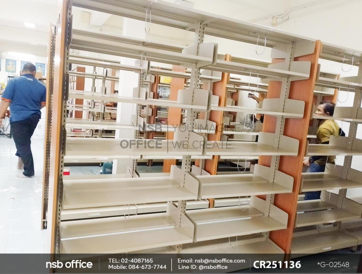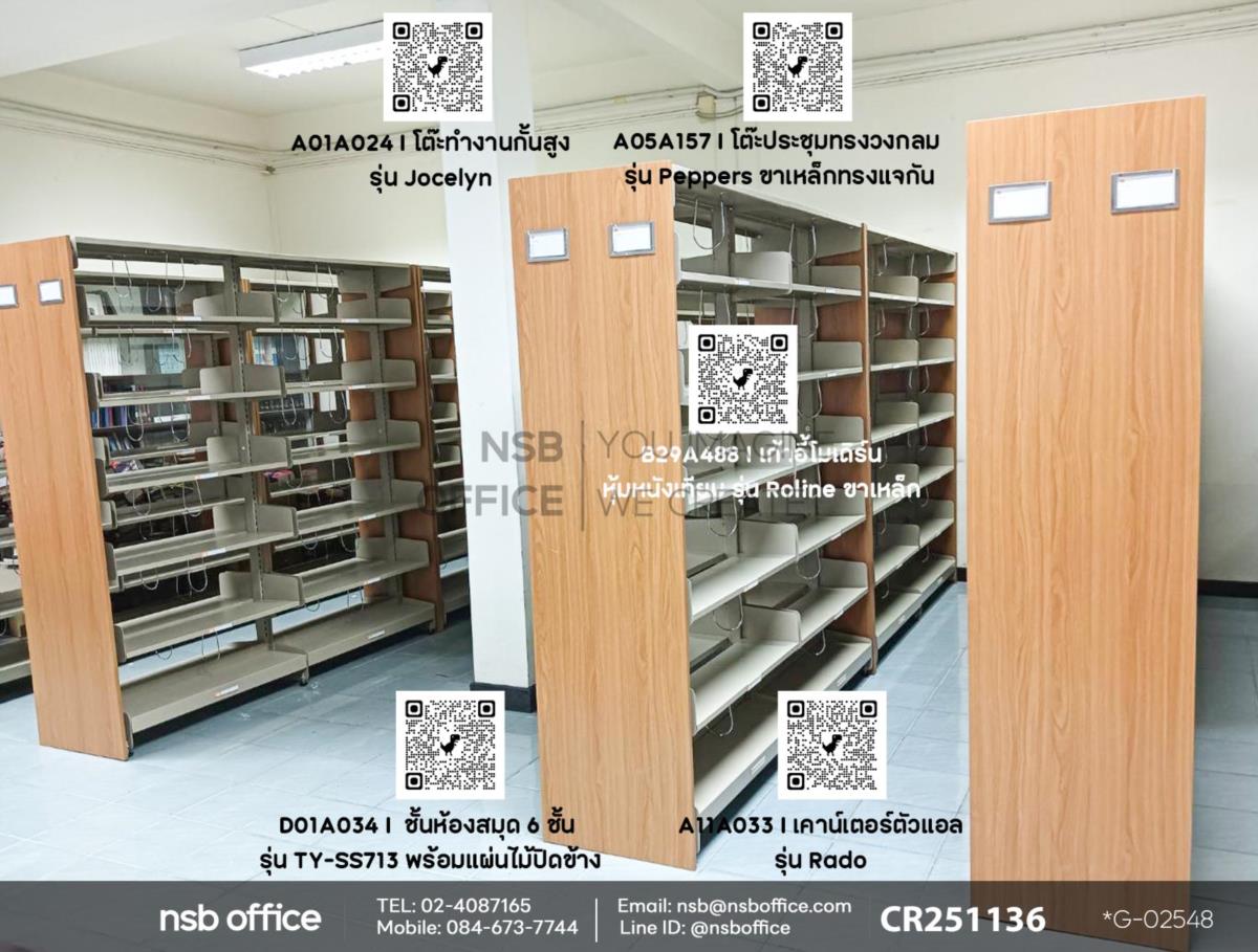 หน้างานนี้เป็นโซนห้องสมุด ลูกค้าได้เลือกซื้อชั้นห้องสมุด 6 ชั้น รุ่น TY-SS713 รหัสสินค้า D01A034 พร้อมแผ่นไม้ปิดข้าง เหล็กสีครีมไม้สีเชอรี่ เสริมการทำงานด้วยโต๊ะทำงานกั้นสูง รุ่น Jocelyn (โจเซลีน) รหัสสินค้า A01A024 และโต๊ะประชุมทรงวงกลม รุ่น Peppers รหัสสินค้า A05A157 ที่จะช่วยให้คุณสร้างบรรยากาศที่ดีและสร้างสรรค์ให้กับพื้นที่ห้องสมุดของคุณค่ะ