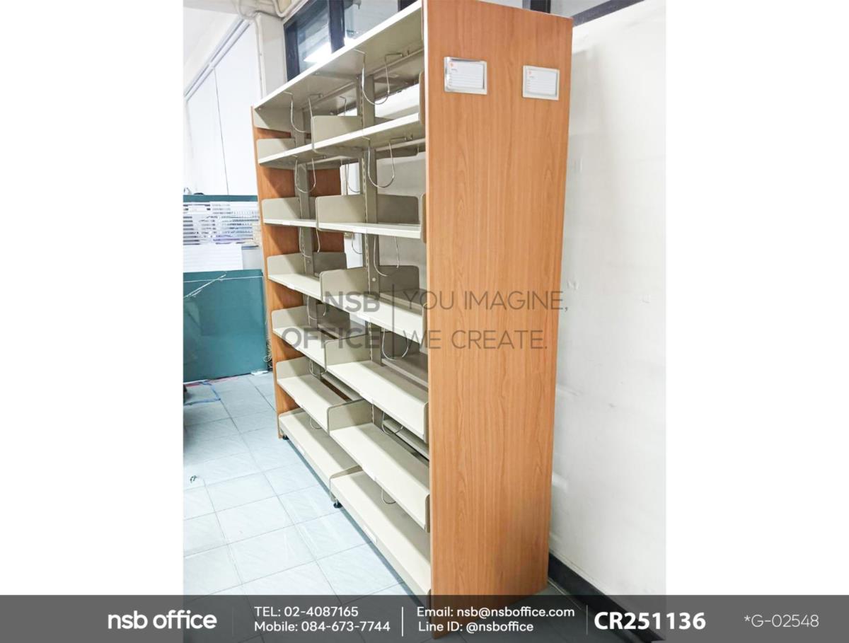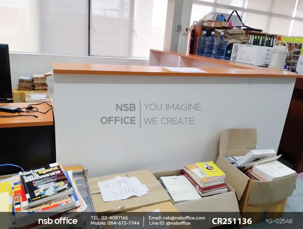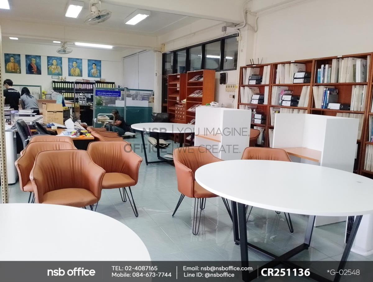 หน้างานนี้เป็นโซนห้องสมุด ลูกค้าได้เลือกซื้อชั้นห้องสมุด 6 ชั้น รุ่น TY-SS713 รหัสสินค้า D01A034 พร้อมแผ่นไม้ปิดข้าง เหล็กสีครีมไม้สีเชอรี่ เสริมการทำงานด้วยโต๊ะทำงานกั้นสูง รุ่น Jocelyn (โจเซลีน) รหัสสินค้า A01A024 และโต๊ะประชุมทรงวงกลม รุ่น Peppers รหัสสินค้า A05A157 ที่จะช่วยให้คุณสร้างบรรยากาศที่ดีและสร้างสรรค์ให้กับพื้นที่ห้องสมุดของคุณค่ะ