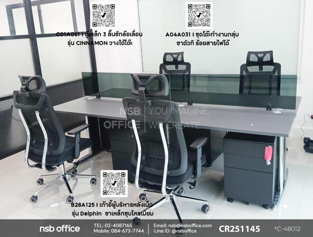 จัดส่งสินค้าเรียบร้อยแล้วค่ะ หน้างานนี้ลูกค้าได้เลือกซื้อชุดโต๊ะทำงานกลุ่ม รหัสสินค้า A04A031 เสริมการใช้งานด้วยตู้เหล็กเก็บเอกสาร รุ่น CINNAMON (ซินนามอน) รหัสสินค้า C01A061 เพื่อความสะดวกสบายในการทำงานด้วยเก้าอี้ผู้บริหารหลังเน็ต รุ่น Delphin (เดลฟิน) รหัสสินค้า B28A125 ช่วยให้การนั่งทำงานของคุณมีประสิทธิภาพตลอดทั้งวันค่ะ