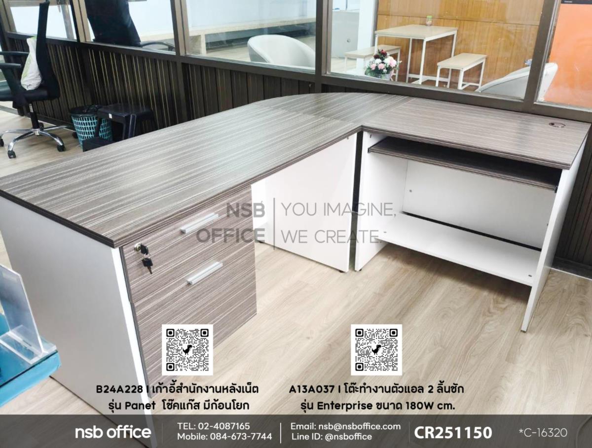 จัดส่งสินค้าถึงที่เรียบร้อยแล้วค่ะ หน้างานนี้ลูกค้าเลือกซื้อโต๊ะทำงานตัวแอล 2 ลิ้นชัก รุ่น Enterprise รหัสสินค้า A13A037 ไปใช้ภายในสำนักงาน สี Euroline Grey คู่กันกับเก้าอี้สำนักงานหลังเน็ต รุ่น Panet (แพนิต) รหัสสินค้า B24A228 และเก้าอี้สำนักงาน รุ่น Highmore (ไฮร์มอร์) รหัสสินค้า B24A261 ค่ะ
