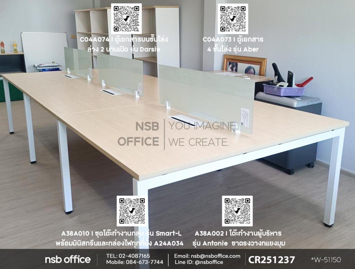 จัดส่งสินค้าเรียบร้อยแล้วค่ะ หน้างานนี้ลูกค้าได้เลือกซื้อชุดโต๊ะทำงานกลุ่มรุ่น Smart-L รหัสสินค้า A38A010 และโต๊ะทำงานผู้บริหาร รุ่น Antonie (แอนโทนี่) รหัสสินค้า A38A002 เสริมการใช้งานด้วยตู้เอกสาร 4 ชั้นโล่ง รุ่น Aber (เอเบอร์) รหัสสินค้า C04A073 และตู้เอกสารบนชั้นโล่ง ล่าง 2 บานเปิด รุ่น Darsie (ดาร์ซี) รหัสสินค้า C04A074 สำหรับการใช้งานด้วยค่ะ