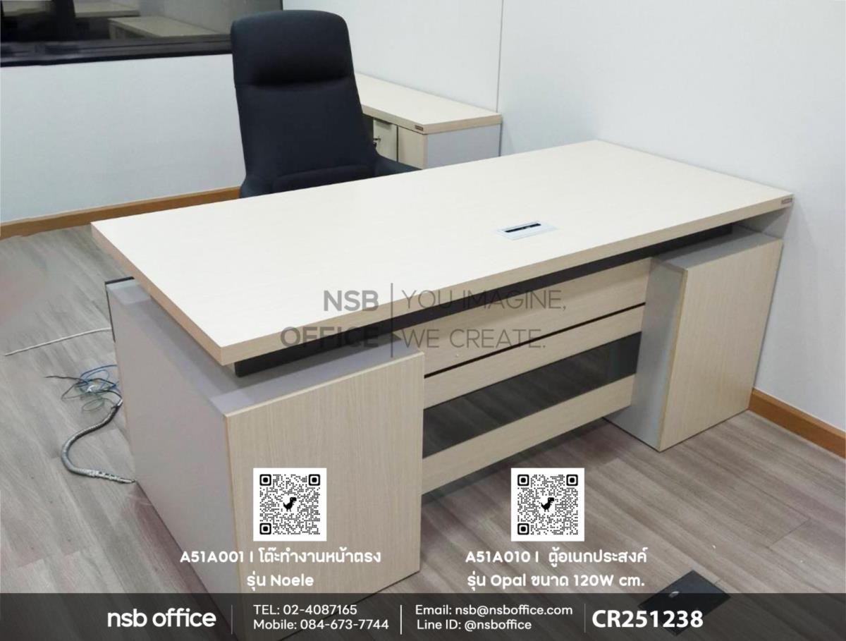 คุณกำลังมองหาโต๊ะทำงานที่ตอบโจทย์ทั้งความสวยงามและฟังก์ชันการใช้งานอยู่ โต๊ะทำงานหน้าตรงรุ่น Noele (โนแอล) รหัสสินค้า A51A001 ของเราออกแบบมาเพื่อให้คุณมีพื้นที่ทำงานที่สะดวกสบายและมีสไตล์ ไม่ว่าจะเป็นการทำงานจากที่บ้านหรือในสำนักงาน โต๊ะนี้จะช่วยเพิ่มประสิทธิภาพในการทำงานของคุณได้อย่างแน่นอน เสริมการใช้งานด้วยตู้อเนกประสงค์รุ่น Opal (โอปอล) รหัสสินค้า A51A010 ที่สามารถใช้เก็บของได้หลากหลายรูปแบบ ไม่ว่าจะเป็นเอกสาร อุปกรณ์สำนักงาน หรือของใช้ส่วนตัว ตู้นี้ถูกออกแบบมาให้เข้ากับโต๊ะทำงานหน้าตรงอย่างลงตัวค่ะ