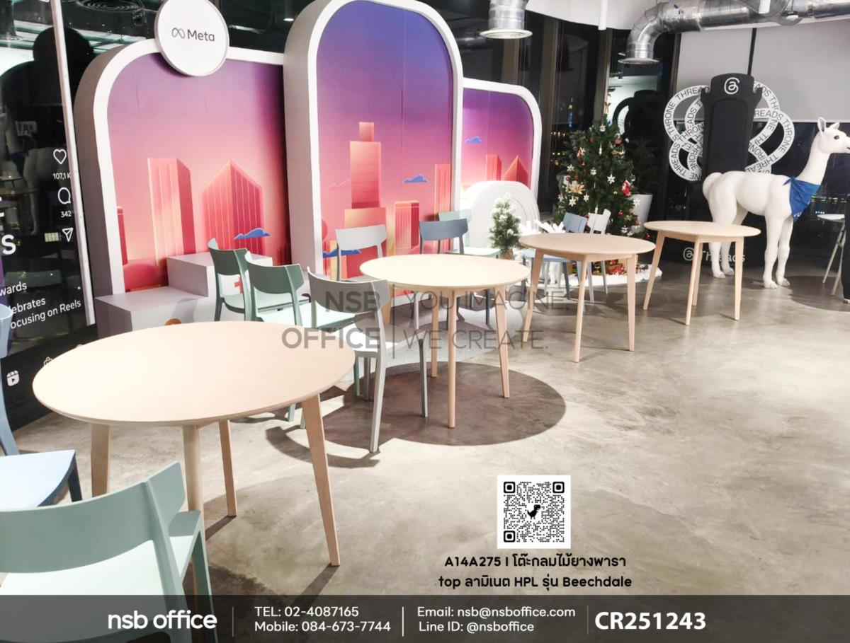 หน้างานนี้เป็นโซนต้อนรับ โซนนั่งพักผ่อน ลูกค้าได้เลือกซื้อโต๊ะกลมไม้ยางพารา top ลามิเนต HPL รุ่น Beechdale (บีชเดล) รหัสสินค้า A14A275 ไปใช้กับเก้าอี้โมเดิร์นพลาสติกที่ลูกค้ามี ไม่ว่าจะเป็นห้องนั่งเล่น ห้องอาหาร หรือแม้แต่สำนักงาน ด้วยความสวยงามของไม้ยางพาราที่ให้ความรู้สึกอบอุ่นและเป็นธรรมชาติ พร้อมด้วย Top ลามิเนต HPL ที่มีความแข็งแรง ทนต่อรอยขีดข่วน และง่ายต่อการทำความสะอาดค่ะ