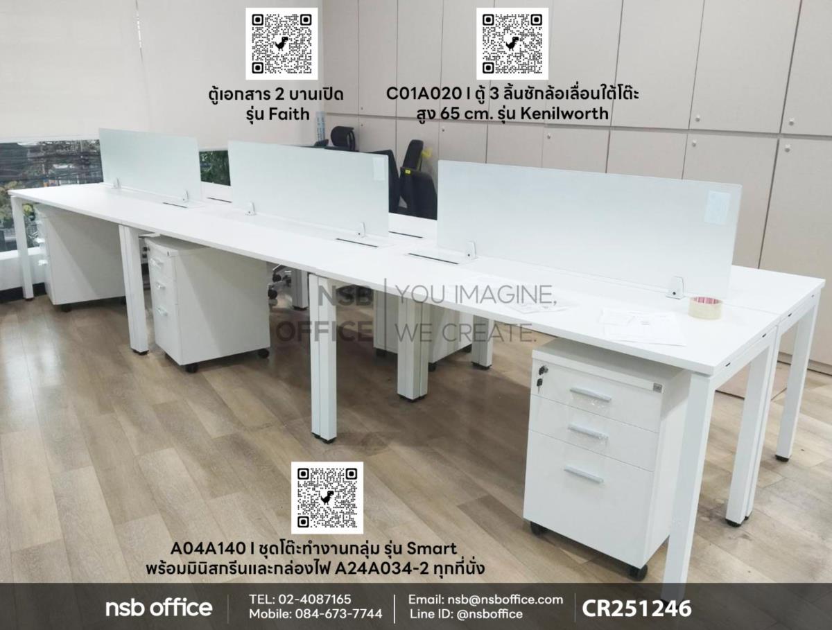 สร้างสรรค์พื้นที่ทำงานที่มีประสิทธิภาพด้วยชุดโต๊ะทำงานกลุ่มรุ่น Smart รหัสสินค้า A04A140 ที่ออกแบบมาเพื่อความสะดวกสบายและการทำงานร่วมกันอย่างมีประสิทธิภาพ ชุดนี้มาพร้อมกับมินิสกรีนที่ช่วยให้คุณสามารถแบ่งปันไอเดียและทำงานร่วมกับเพื่อนร่วมงานได้อย่างง่ายดาย เสริมตู้ 3 ลิ้นชักล้อเลื่อนรุ่น Kenilworth (เคนิลเวิร์ธ) รหัสสินค้า C01A020 ใช้ใต้โต๊ะ ที่ช่วยให้คุณเข้าถึงเอกสารและอุปกรณ์ต่างๆ ได้อย่างสะดวกสบาย ไม่ว่าคุณจะทำงานที่บ้านหรือในสำนักงาน ชุดโต๊ะทำงานกลุ่มนี้จะช่วยเพิ่มประสิทธิภาพในการทำงานและสร้างบรรยากาศที่ดีในการทำงานร่วมกันค่ะ