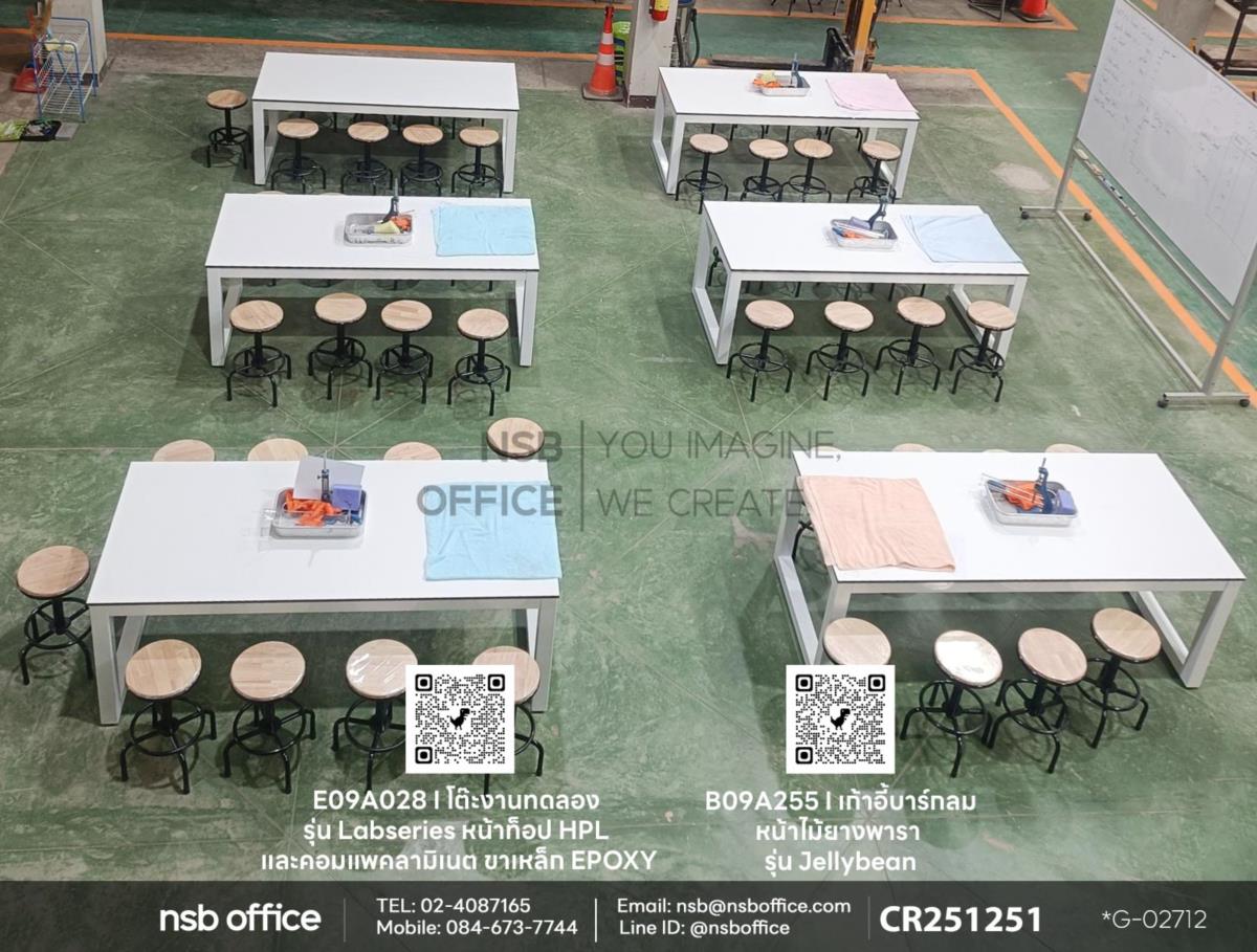 หน้างานนี้เป็นโซนห้องทดลอง ลูกค้าได้เลือกซื้อโต๊ะงานทดลองหน้าท็อปคอมแพคลามิเนต รุ่น Labseries รหัสสินค้า E09A028 โต๊ะนี้ไม่เพียงแต่สวยงาม แต่ยังทนทานและใช้งานได้อย่างมีประสิทธิภาพ ใช้งานคู่กันกับเก้าอี้บาร์กลมหน้าไม้ยางพารา รุ่น Jellybean (เจลลี่บีน) รหัสสินค้า B09A255 ที่จะมาช่วยเสริมความสะดวกสบายในการนั่งทำงานค่ะ