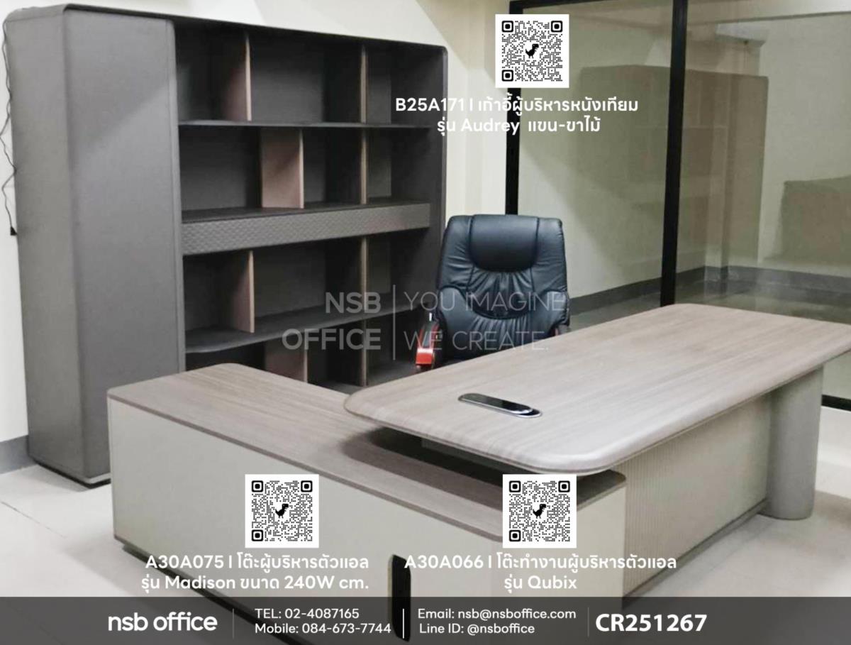 สร้างบรรยากาศการทำงานที่มีระดับด้วยชุดโต๊ะผู้บริหารตัวแอลรุ่น Madison (เมดิสัน) รหัสสินค้า A30A075 ที่ออกแบบมาอย่างลงตัว เสริมด้วยตู้โชว์ ตู้เก็บเอกสารรุ่น Qubix (คิวบิกซ์) รหัสสินค้า A30A066 ที่ช่วยให้คุณจัดระเบียบพื้นที่ทำงานได้อย่างมีประสิทธิภาพ และเก้าอี้ผู้บริหารหนังเทียมรุ่น Audrey (ออเดรย์) รหัสสินค้า B25A171 ที่ให้ความสะดวกสบายและความหรูหราในเวลาเดียวกัน โต๊ะผู้บริหารตัวแอลที่มีดีไซน์ทันสมัย เหมาะสำหรับการประชุมและการทำงาน ตู้เก็บเอกสารที่มีพื้นที่กว้างขวาง ช่วยให้คุณจัดเก็บเอกสารได้อย่างเป็นระเบียบค่ะ