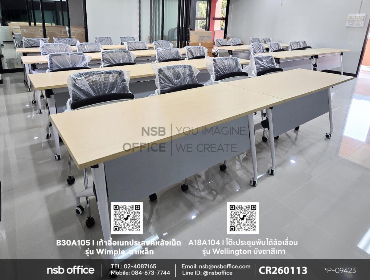 เพื่อให้การอบรม การสัมมนา หรือการทำงานของคุณมีประสิทธิภาพมากยิ่งขึ้น เราขอแนะนำเป็นโต๊ะประชุมพับได้ล้อเลื่อน รุ่น Wellington (เวลลิงตัน) รหัสสินค้า A18A104 ให้ใช้งานคู่กับเก้าอี้อเนกประสงค์หลังเน็ต รุ่น Wimple (วิมเปิ้ล) รหัสสินค้า B30A105 ที่ออกแบบมาเพื่อความสบายและรองรับการนั่งทำงานในระยะเวลานาน ไม่ว่าจะเป็นการประชุม การสัมมนา หรือการทำงานกลุ่มค่ะ