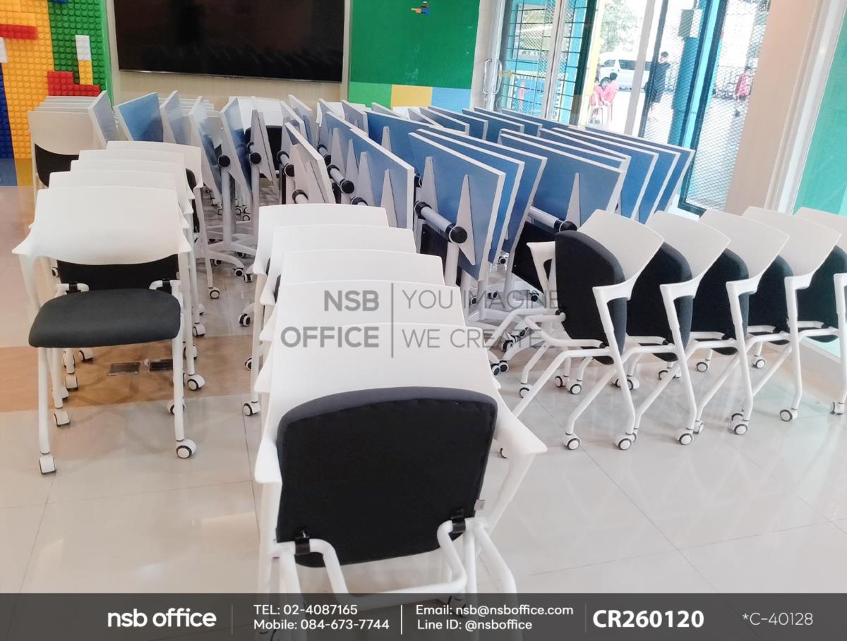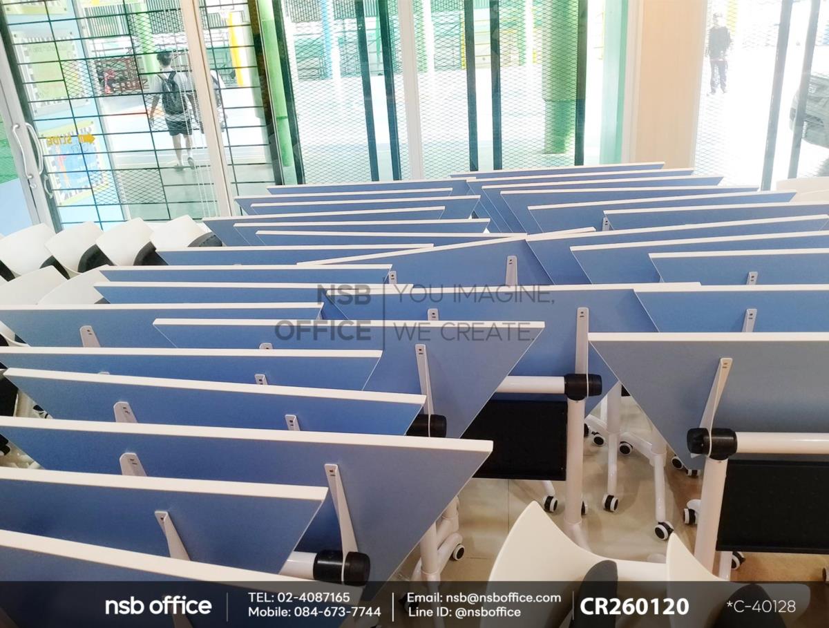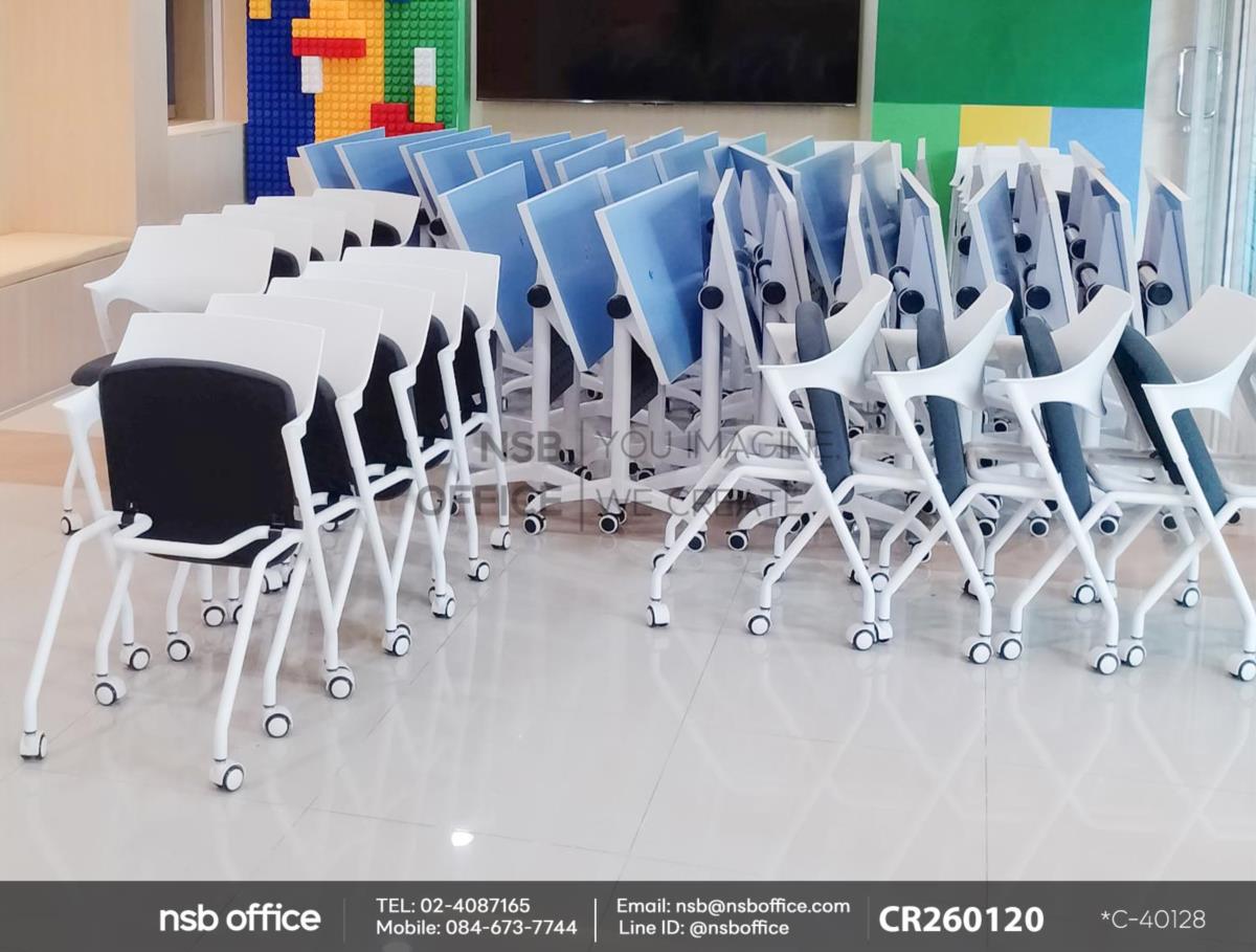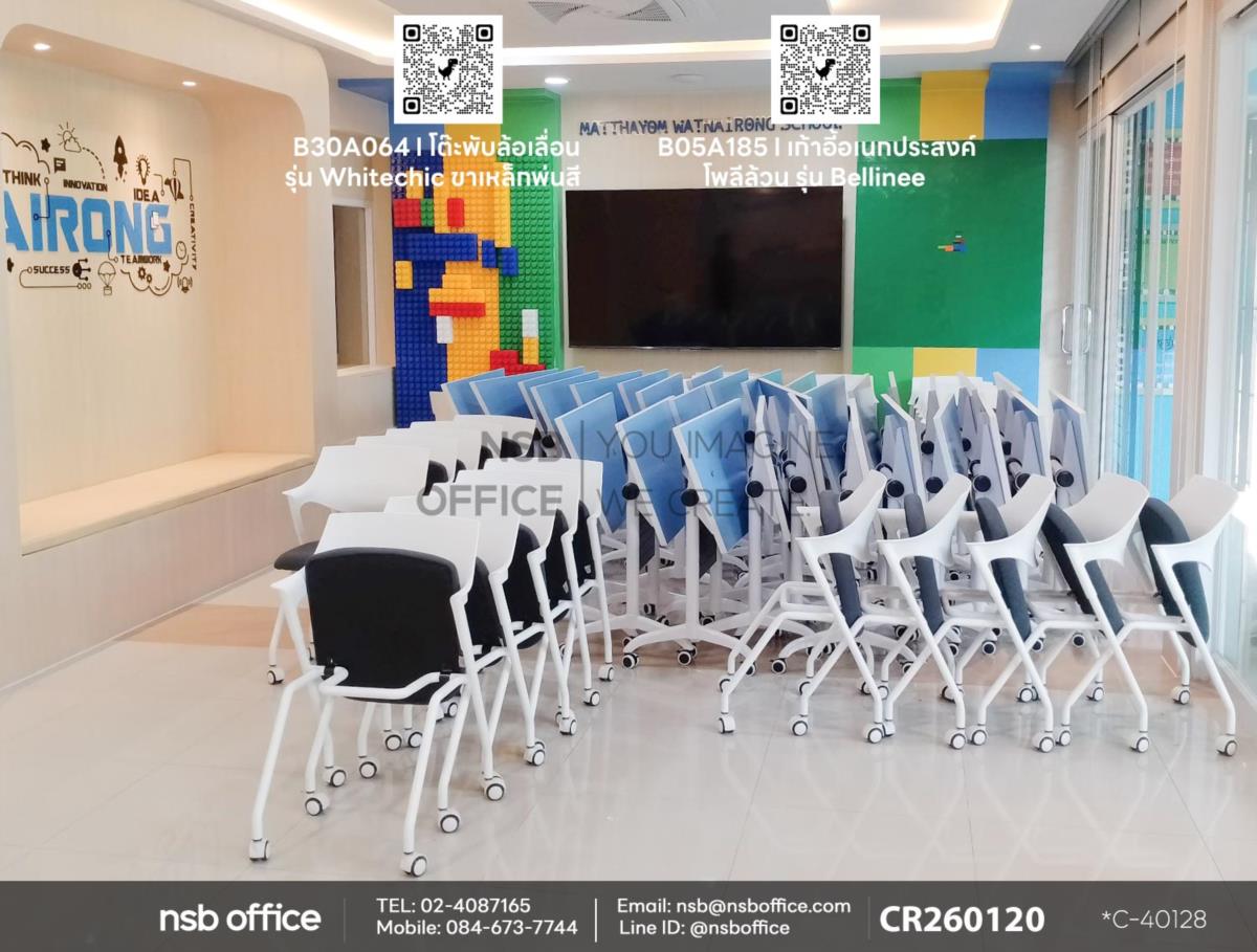 พบกับโต๊ะพับล้อเลื่อนสีสันสดใส รุ่น Whitechic (ไวท์ชิค) รหัสสินค้า B30A064 top เมลามีนสีพิเศษสีฟ้า (Light sky LS-06) ขอบขาว ที่ออกแบบมาเพื่อความสะดวกในการใช้งาน ไม่ว่าจะใช้ในห้องเรียน ห้องกิจกรรมโต๊ะนี้สามารถพับเก็บได้ง่าย และเคลื่อนย้ายได้สะดวกด้วยล้อเลื่อนที่แข็งแรง ใช้งานคู่กับเก้าอี้อเนกประสงค์โพลีล้วน รุ่น Bellinee (เบลลินี่) รหัสสินค้า B05A185 โพลีสีขาว เบาะผ้าสีเทาเข้ม เพิ่มความสะดวกสบายให้กับการนั่งทำงานหรือพักผ่อนด้วยเก้าอี้อเนกประสงค์โพลีล้วน ที่มีดีไซน์ทันสมัยและรองรับสรีระได้อย่างดีเยี่ยมค่ะ