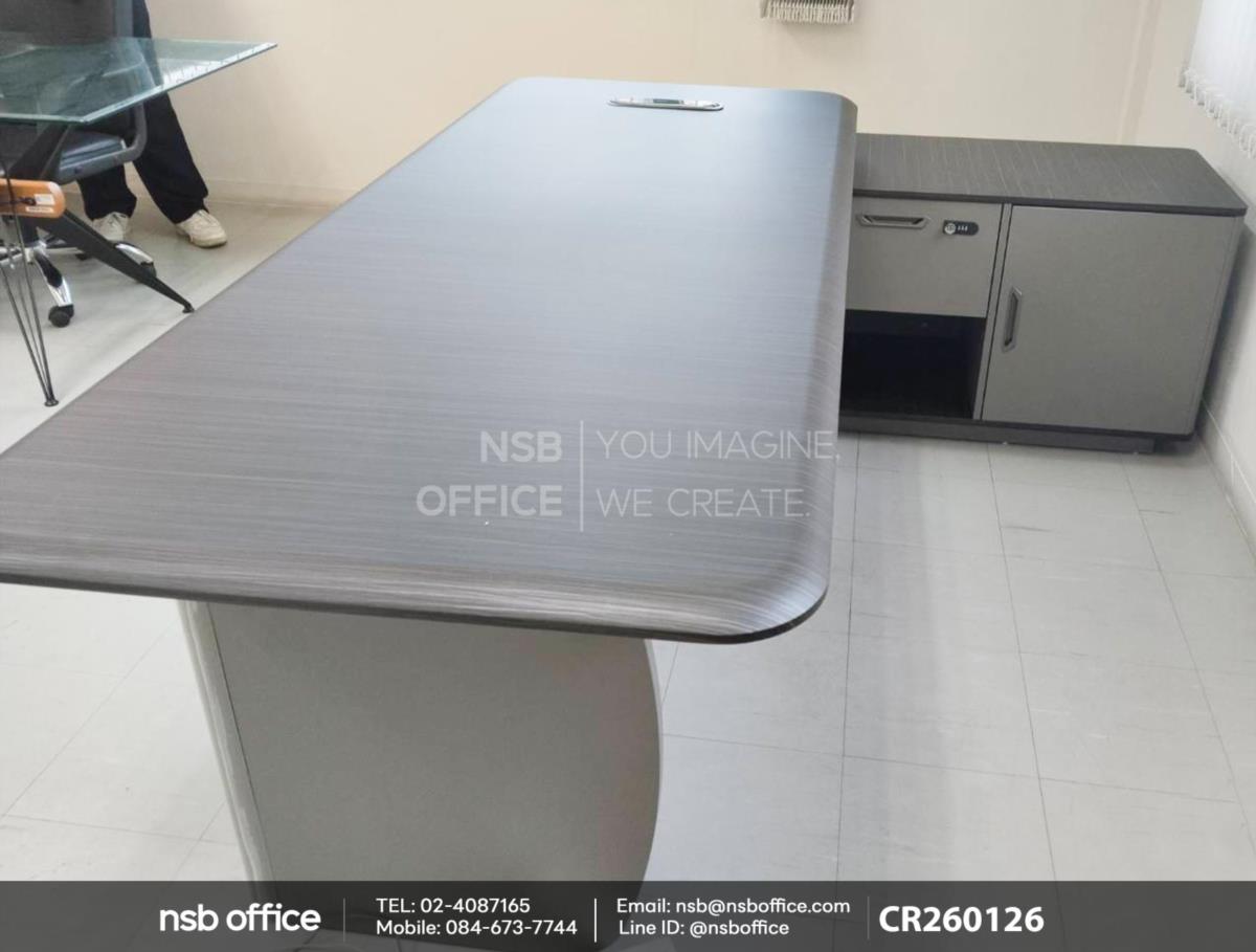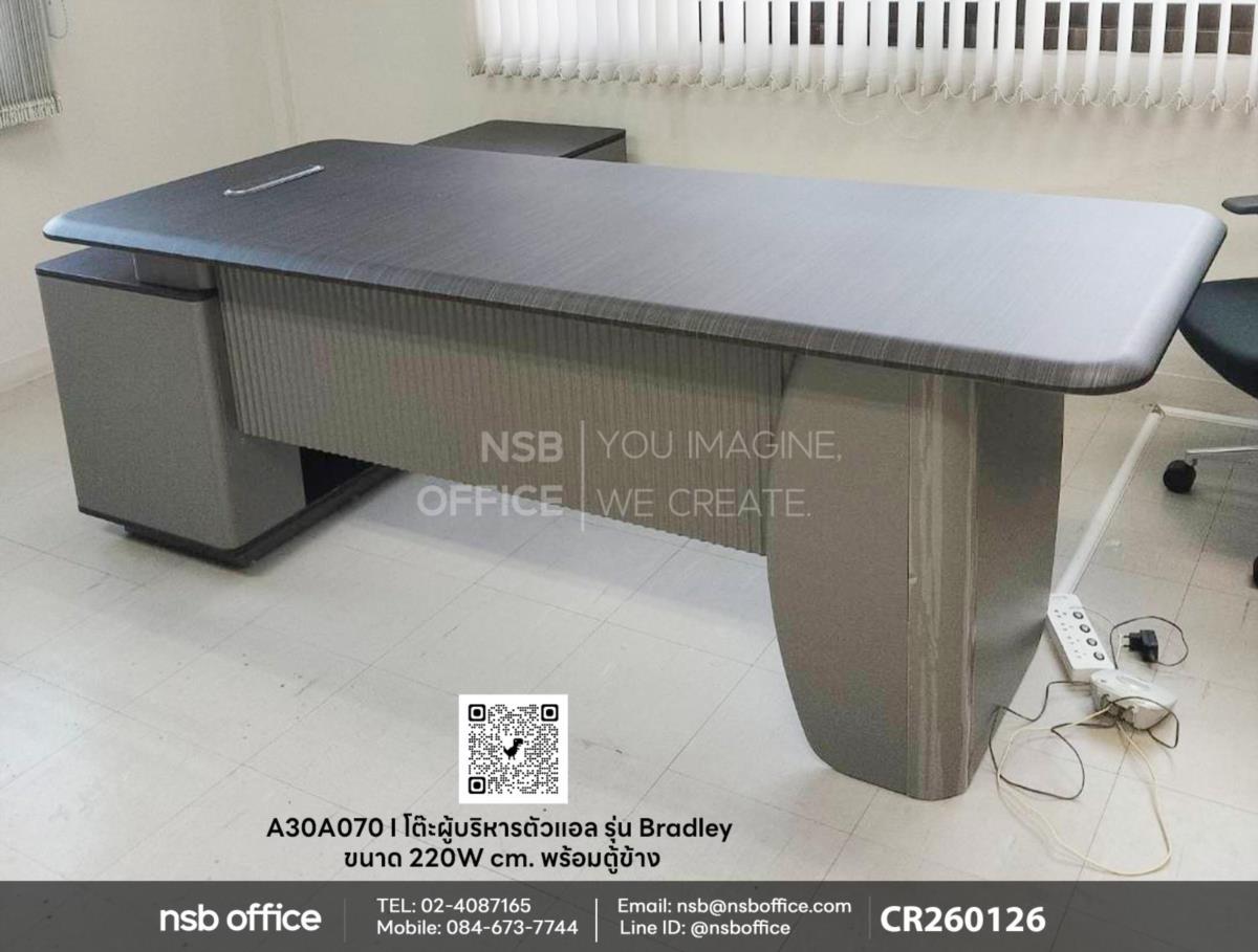 หน้างานนี้เป็นโซนห้องผู้บริหารลูกค้าได้เลือกซื้อโต๊ะผู้บริหารตัวแอล รุ่น Bradley รหัสสินค้า A30A070 ขนาด 220W cm. พร้อมตู้ข้าง รูปทรงตัวแอลที่ช่วยเพิ่มพื้นที่ใช้สอยและทำให้ห้องทำงานของคุณดูโปร่งสบาย ตู้ข้างที่มีช่องเก็บของมากมาย ช่วยให้คุณจัดระเบียบเอกสารและอุปกรณ์สำนักงานได้อย่างมีประสิทธิภาพ ผลิตจากวัสดุที่ทนทานและมีความสวยงาม เหมาะสำหรับการใช้งานในระยะยาวมากๆค่ะ