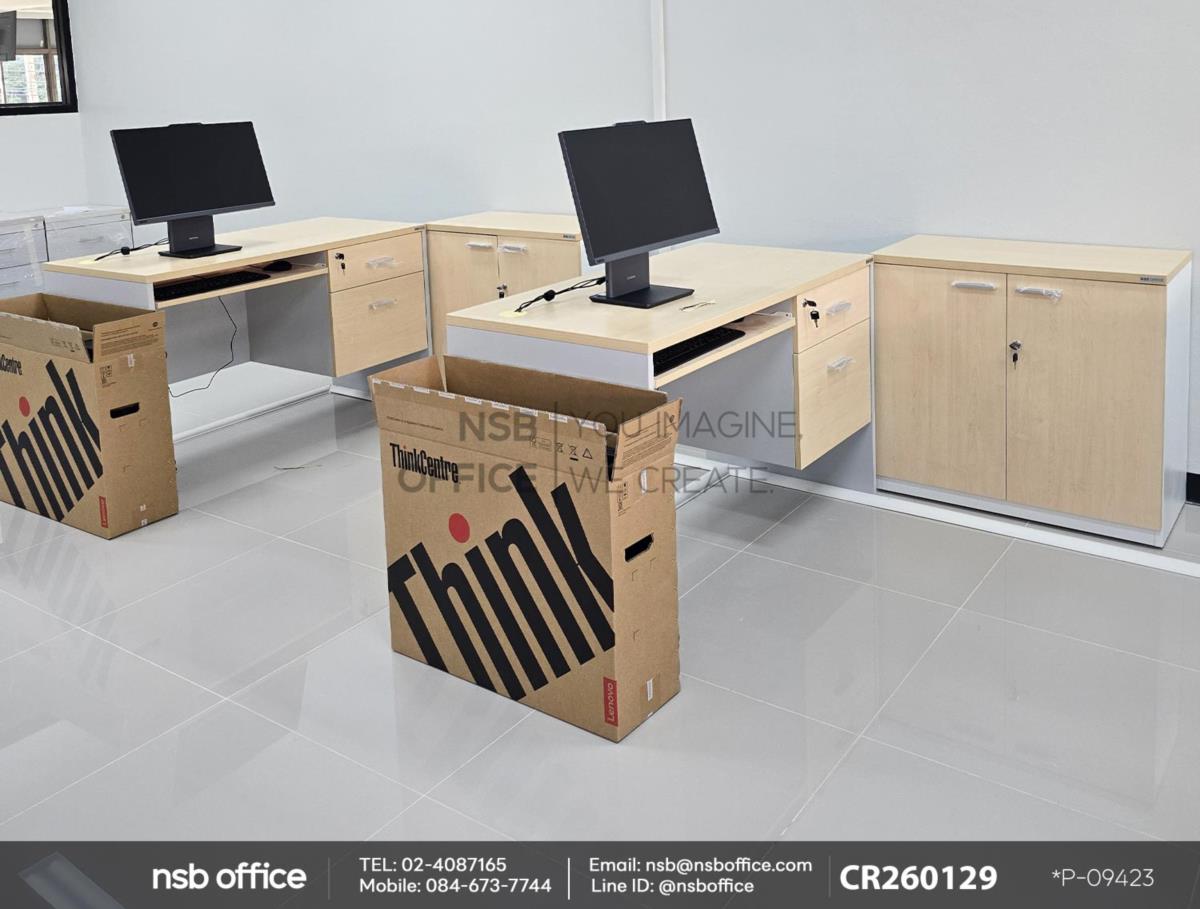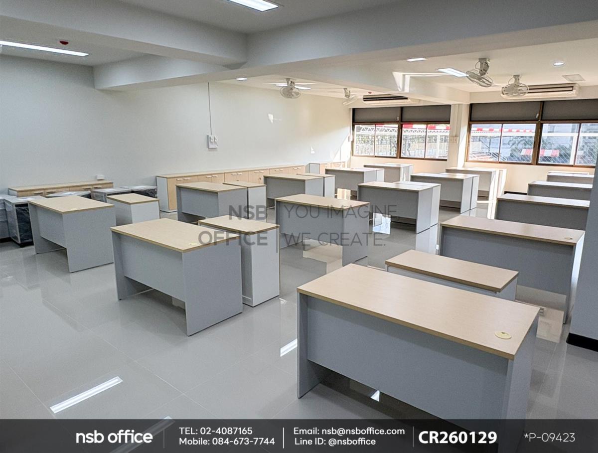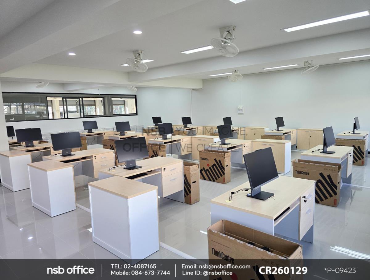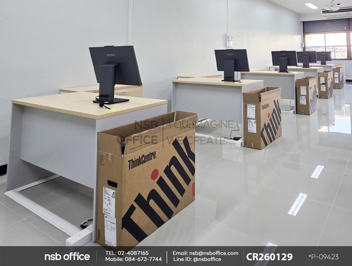 หน้างานนี้เป็นห้องเรียนสำหรับใช้คอมพิวเตอร์ ลูกค้าได้เลือกซื้อโต๊ะคอมพิวเตอร์ 2 ลิ้นชัก รุ่น Thicke (ธิก) รหัสสินค้า A12A011 สีเมเปิ้ลตัดเทาอ่อน โต๊ะรุ่นนี้จะมาพร้อมรางคีย์บอร์ด และตู้ลิ้นชัก 2 ลิ้นชัก เสริมการใช้งานด้วย ตู้เอกสาร รุ่น Faith (เฟธ) รหัสสินค้า C01A091 , รุ่น Freren (เฟรเรน) รหัสสินค้า C01A091 สีเมเปิ้ลตัดขาว ที่สามารถเก็บเอกสารสำคัญและอุปกรณ์สำนักงานได้อย่างมีประสิทธิภาพ ตู้เอกสารนี้ออกแบบมาให้เข้ากับโต๊ะคอมพิวเตอร์อย่างลงตัว ทำให้พื้นที่ทำงานของคุณดูเรียบร้อยและเป็นระเบียบมากขึ้นค่ะ