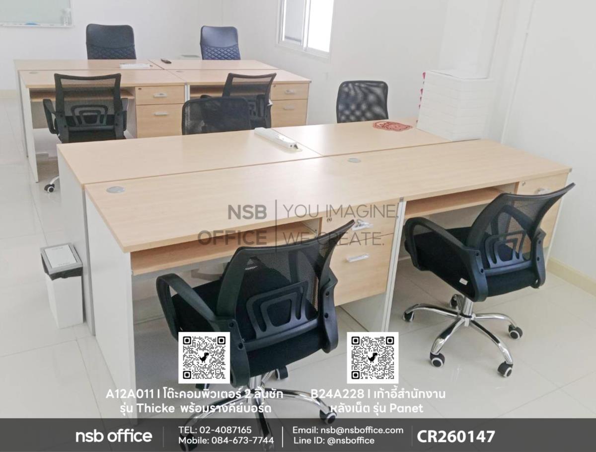 จัดส่งสินค้าเรียบร้อยแล้วค่ะ หน้างานนี้เป็นโซนสำนักงาน ลูกค้าได้เลือกซื้อโต๊ะคอมพิวเตอร์ 2 ลิ้นชัก รุ่น Thicke (ธิก) รหัสสินค้า A12A011 รุ่นนี้จะมาพร้อมรางคีย์บอร์ด เพื่อความสะดวกสบายในการทำงาน และมี 2 ลิ้นชักสำหรับเก็บเอกสารและอุปกรณ์ต่างๆ เสริมการใช้งานด้วยเก้าอี้สำนักงานหลังเน็ต รุ่น Panet (แพนิต) รหัสสินค้า B24A228 ที่ออกแบบมาเพื่อรองรับการนั่งทำงานในระยะยาวอย่างมีประสิทธิภาพ ช่วยลดอาการเมื่อยล้าในระหว่างการทำงานค่ะ