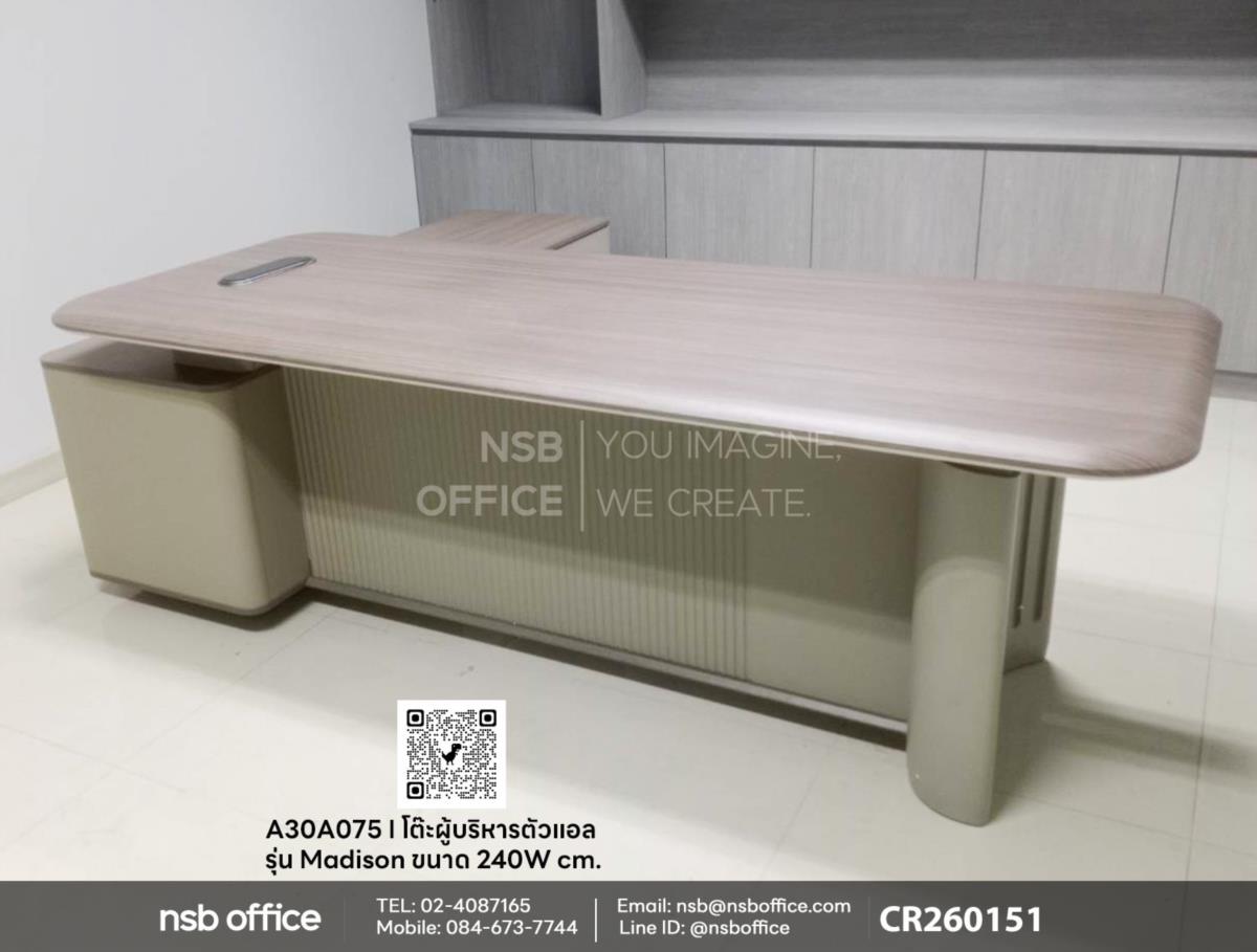 หากคุณกำลังมองหาโต๊ะทำงานที่ไม่เพียงแต่สวยงาม แต่ยังมีฟังก์ชันการใช้งานที่ตอบโจทย์ โต๊ะผู้บริหารตัวแอล รุ่น Madison (เมดิสัน) รหัสสินค้า A30A075 ด้วยดีไซน์ทันสมัย รูปทรงตัวแอลที่ช่วยเพิ่มพื้นที่ทำงานและสร้างบรรยากาศที่เป็นมืออาชีพ ผลิตจากวัสดุที่ทนทานและมีความสวยงาม เหมาะสำหรับการใช้งานในระยะยาว มีพื้นที่สำหรับวางเอกสาร อุปกรณ์สำนักงาน และอุปกรณ์เทคโนโลยีต่างๆ ได้อย่างลงตัวค่ะ