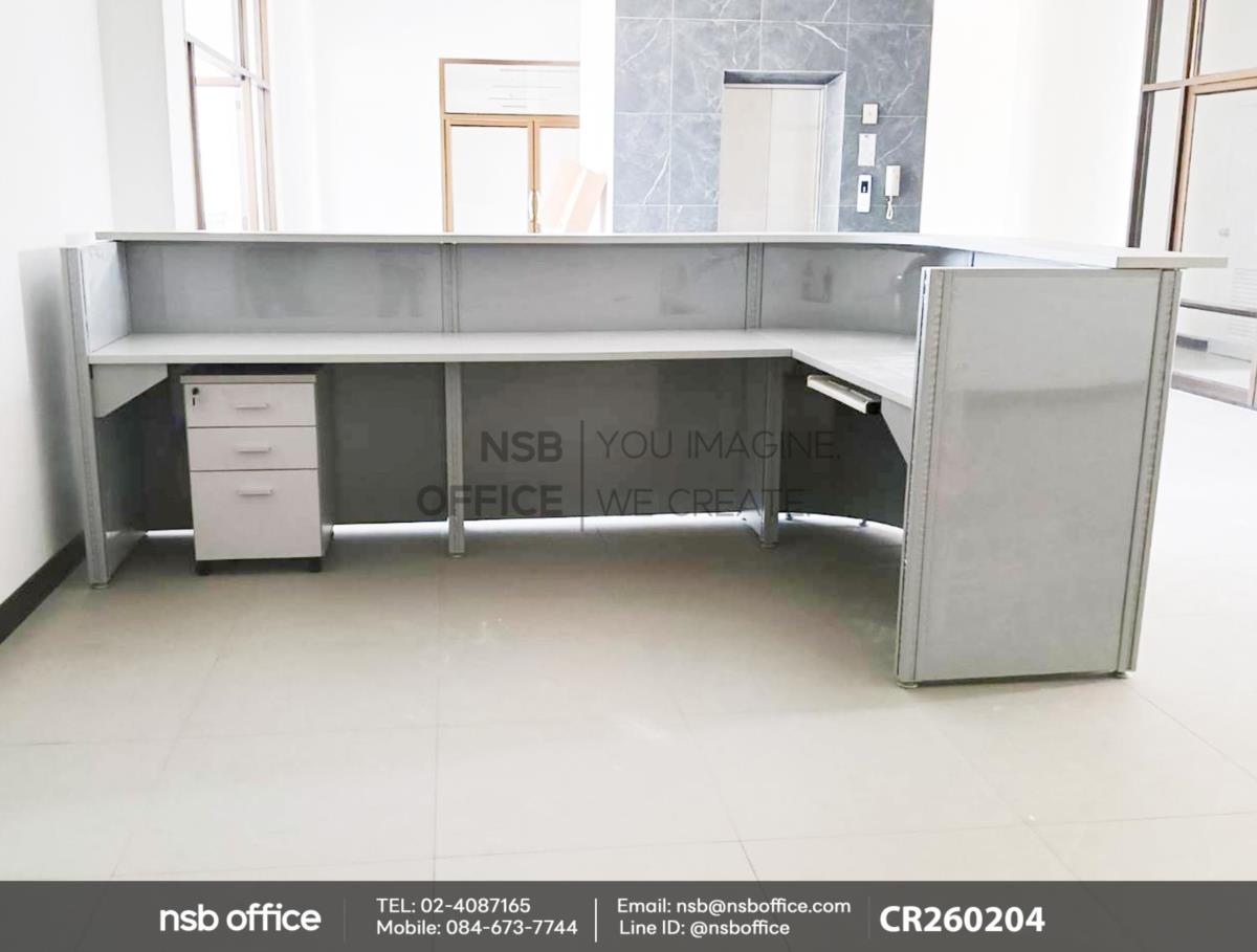 สำหรับหน้างานนี้เป็นโซนต้อนรับ ลูกค้าได้เลือกซื้อเคาน์เตอร์ตัวแอลรุ่น Westley (เวสต์ลีย์) รหัสสินค้า A48A023 รุ่นนนี้ออกแบบมาเพื่อให้คุณมีพื้นที่ทำงานที่กว้างขวางและเป็นระเบียบ มีตู้ลิ้นชักช่วยให้คุณจัดเก็บเอกสารและอุปกรณ์ต่างๆ ได้อย่างสะดวกสบาย ในขณะที่รางคีย์บอร์ดช่วยให้คุณสามารถใช้งานคอมพิวเตอร์ได้อย่างมีประสิทธิภาพ เหมาะสำหรับทุกพื้นที่ ไม่ว่าคุณจะทำงานที่บ้านหรือในสำนักงาน เคาน์เตอร์นี้สามารถปรับเข้ากับทุกสภาพแวดล้อมได้อย่างลงตัวค่ะ