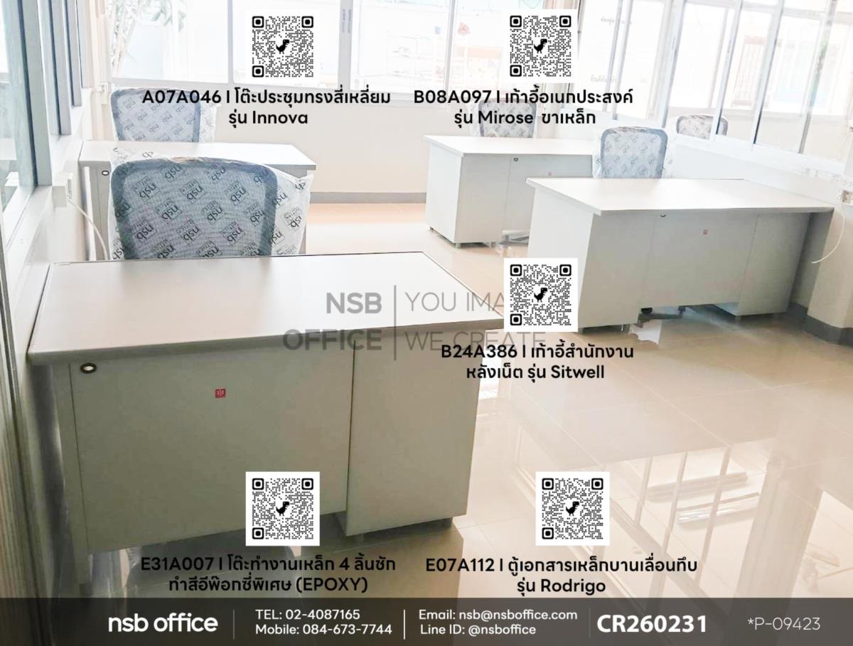 หากคุณกำลังมองหาวิธีเพิ่มประสิทธิภาพในการทำงาน โต๊ะทำงานเหล็ก 4 ลิ้นชัก รหัสสินค้า E31A007 ใช้งานคู่กับเก้าอี้สำนักงานหลังเน็ต รุ่น Sitwell (ซิทเวล) รหัสสินค้า B24A386 เสริมด้วยตู้เอกสารเหล็กบานเลื่อนทึบรุ่น Rodrigo (โรดริโก้) รหัสสินค้า E07A112 ช่วยให้คุณสามารถจัดระเบียบเอกสารและอุปกรณ์ต่าง ๆ ได้อย่างมีระเบียบเรียบร้อย ในขณะที่ตู้เอกสารเหล็กบานเลื่อนทึบช่วยเพิ่มความเป็นระเบียบและความปลอดภัยให้กับเอกสารสำคัญของคุณ การเลือกใช้เฟอร์นิเจอร์ที่มีคุณภาพไม่เพียงแต่ช่วยให้พื้นที่ทำงานของคุณดูดีขึ้น แต่ยังช่วยเพิ่มประสิทธิภาพในการทำงานอีกด้วย สร้างบรรยากาศที่เหมาะสมสำหรับการทำงานและสร้างแรงบันดาลใจให้กับคุณทุกวันค่ะ