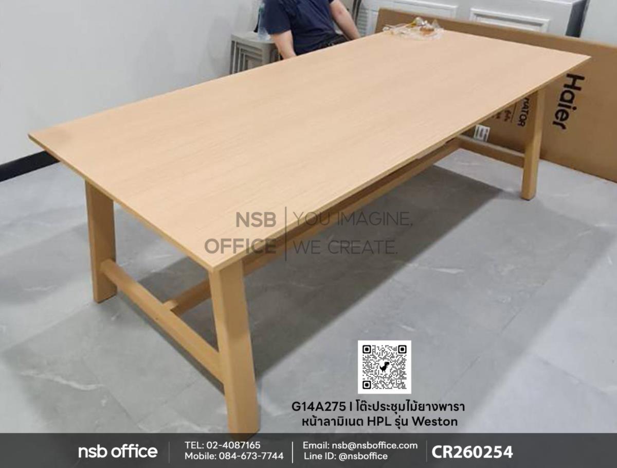 หากคุณกำลังมองหาโต๊ะประชุมที่มีคุณภาพและดีไซน์ทันสมัย โต๊ะประชุมไม้ยางพาราหน้าลามิเนต HPLรุ่น Weston (เวสตัน) รหัสสินค้า G14A275 สีเผือก คือคำตอบที่คุณไม่ควรพลาด ผลิตจากไม้ยางพาราที่มีความแข็งแรง ทนทาน ให้ความสวยงาม และความทนทานต่อรอยขีดข่วน ทำให้โต๊ะดูใหม่อยู่เสมอดีไซน์ทันสมัย เหมาะสำหรับการใช้งานในสำนักงานหรือห้องประชุมที่ต้องการบรรยากาศที่เป็นมืออาชีพค่ะ