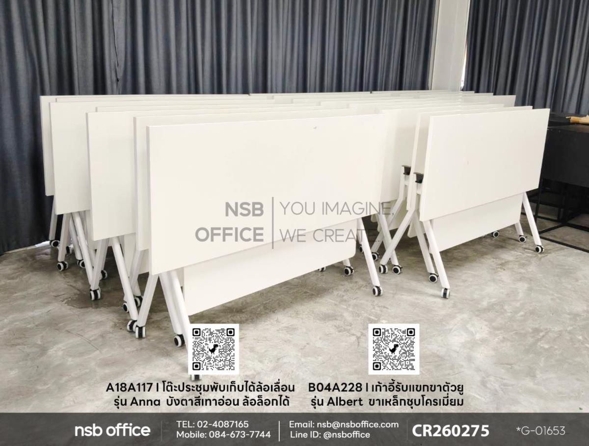 หากคุณกำลังมองหาโต๊ะประชุมที่ใช้งานได้หลากหลายและสะดวกสบาย โต๊ะประชุมพับเก็บได้ล้อเลื่อนรุ่น Anna (แอนนา) รหัสสินค้า A18A117 ของเราคือคำตอบที่คุณต้องการ! ด้วยดีไซน์ที่ทันสมัยและสีเทาอ่อนที่เข้ากับทุกสภาพแวดล้อม โต๊ะนี้สามารถพับเก็บได้ง่าย ทำให้คุณประหยัดพื้นที่ได้อย่างมีประสิทธิภาพ ล้อเลื่อนที่สามารถล็อกได้ ช่วยให้การเคลื่อนย้ายโต๊ะเป็นเรื่องง่ายและปลอดภัย ดีไซน์ที่เรียบง่ายและสวยงาม เหมาะสำหรับการประชุมหรือการใช้งานในสำนักงาน ใช้งานคู่กับเก้าอี้รับแขกขาตัวยูรุ่น Albert (อัลเบิร์ต) รหัสสินค้า B04A228 ที่ให้ความสะดวกสบายและสวยงามค่ะ