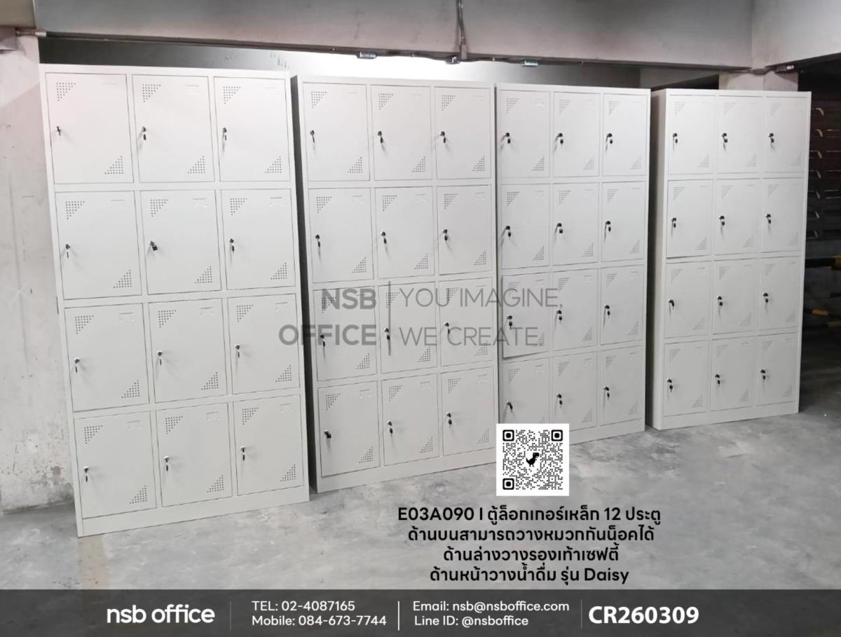 จัดส่งสินค้าถึงที่เรียบร้อยแล้วค่ะ สำหรับหน้างานนี้ลูกค้าได้เลือกซื้อตู้ล็อกเกอร์เหล็ก 12 ประตู รุ่น Daisy (เดซี่) รหัสสินค้า E03A090 รุ่นนี้ถูกออกแบบมาให้ใช้งานได้หลากหลาย ไม่ว่าจะเป็นด้านบนสามารถวางหมวกกันน็อคได้ ด้านล่างวางรองเท้าเซฟตี้ และด้านหน้ายังสามารถวางน้ำดื่มได้อีกด้วยค่ะ