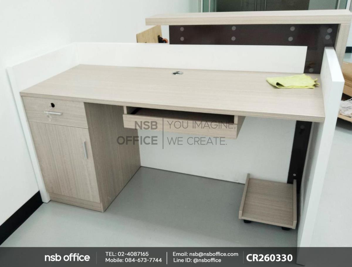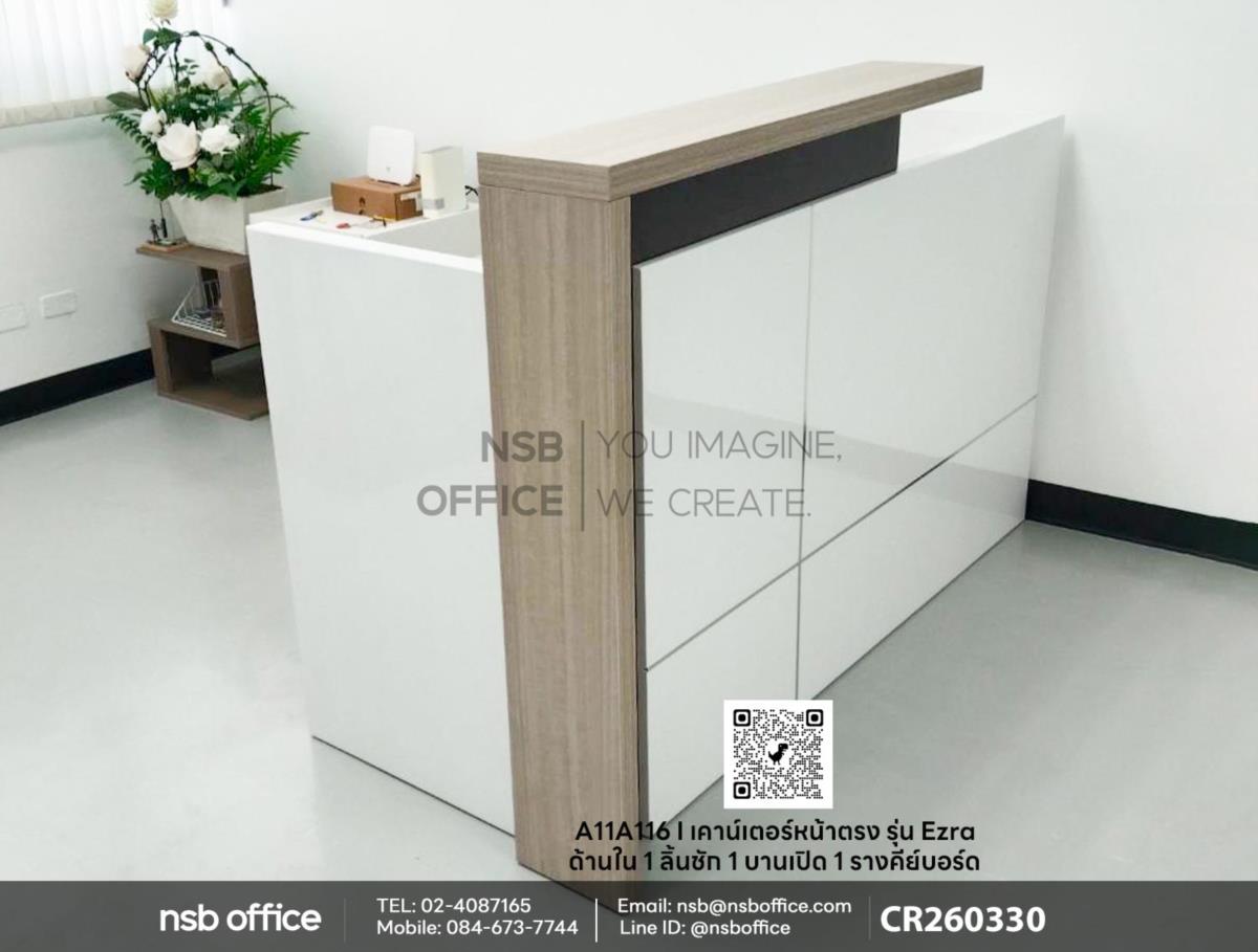 จัดส่งสินค้าเรียบร้อยแล้วค่ะ หน้างานนี้เป็นโซนเคาน์เตอร์ต้อนรับ ลูกค้าได้เลือกซื้อเคาน์เตอร์หน้าตรง รุ่น Ezra (เอซร่า) รหัสสินค้า A11A116 ด้านใน 1 ลิ้นชัก 1 บานเปิด 1 รางคีย์บอร์ด ด้วยฟังก์ชันที่ครบครัน สามารถตอบสนองความต้องการในการทำงานได้อย่างมีประสิทธิภาพ ไม่ว่าคุณจะทำงานที่บ้านหรือในสำนักงาน เคาน์เตอร์หน้าตรงนี้จะช่วยให้คุณมีพื้นที่ทำงานที่เป็นระเบียบและสะดวกสบายมากยิ่งขึ้นค่ะ