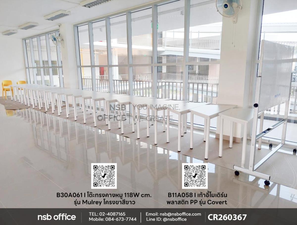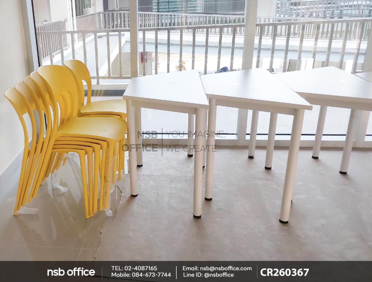 จัดส่งสินค้าเรียบร้อยแล้วค่ะ หน้างานนี้ลูกค้าได้เลือกซื้อโต๊ะทรงคางหมู 118W cm. รุ่น Mulrey รหัสสินค้า B30A061 โครงขาสีขาว ใช้งานคู่กันกับเก้าอี้โมเดิร์นพลาสติก PP รุ่น Covert (โคเวิร์ต) รหัสสินค้า B11A058 สีเหลือง เสริมด้วยกระดานไวท์บอร์ดสำหรับในการใช้งานด้วยค่ะ