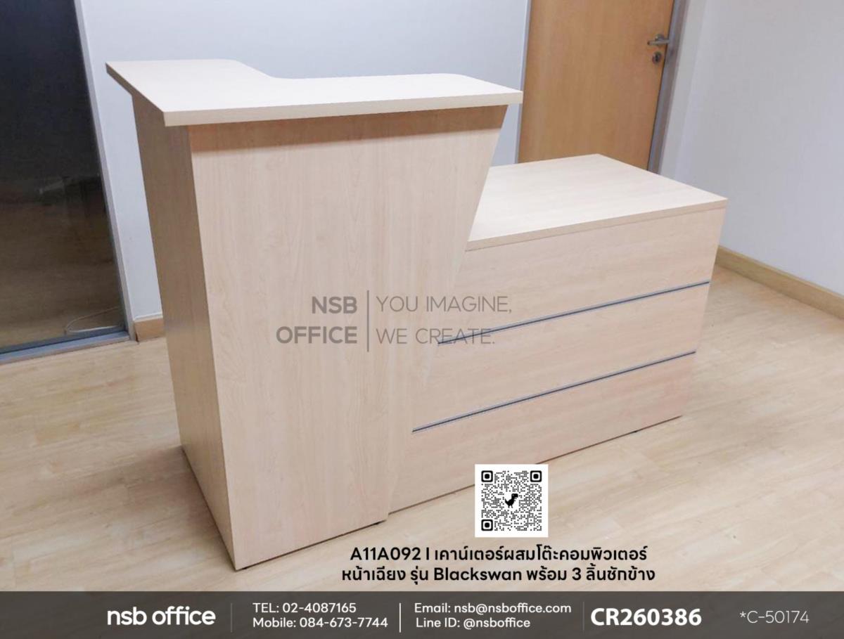หากคุณกำลังมองหาเคาน์เตอร์ที่ตอบโจทย์ทั้งการใช้งานและการตกแต่งบ้านอยู่ เคาน์เตอร์ผสมโต๊ะคอมพิวเตอร์หน้าเฉียงรุ่น Blackswan (แบล็คสวอน) รหัสสินค้า A11A092 สีเมเปิ้ลล้วน ของเราเป็นตัวเลือกที่เหมาะสมที่สุดสำหรับคุณ! 3 ลิ้นชักข้าง ให้คุณเก็บของได้อย่างเป็นระเบียบ ไม่ว่าจะเป็นเอกสาร อุปกรณ์สำนักงาน หรือของใช้ส่วนตัว ทนทานและอายุการใช้งานยาวนานค่ะ