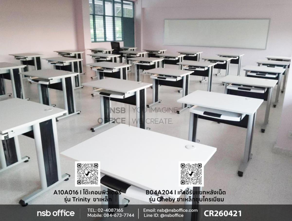 หากคุณกำลังมองหาโต๊ะทำงานที่ทั้งสวยงามและใช้งานได้จริงอยู่ ขอแนะนำเป็นโต๊ะคอมพิวเตอร์รุ่น Trinity (ทรินิตี้) รหัสสินค้า H01A035 ของเราเป็นคำตอบที่คุณต้องการ ด้วยดีไซน์ที่ทันสมัยและวัสดุคุณภาพสูง ใช้งานคู่กับเก้าอี้รับแขกหลังเน็ต รุ่น Cheby (เชบบี้) รหัสสินค้า B04A204 ขาเหล็กชุบโครเมียมทำให้โต๊ะมีความแข็งแรงและทนทานต่อการใช้งานในระยะยาว ใช้งานคู่กันกับ โต๊ะคอมพิวเตอร์นี้จะช่วยให้คุณมีพื้นที่ทำงานที่เป็นระเบียบและมีสไตล์ค่ะ