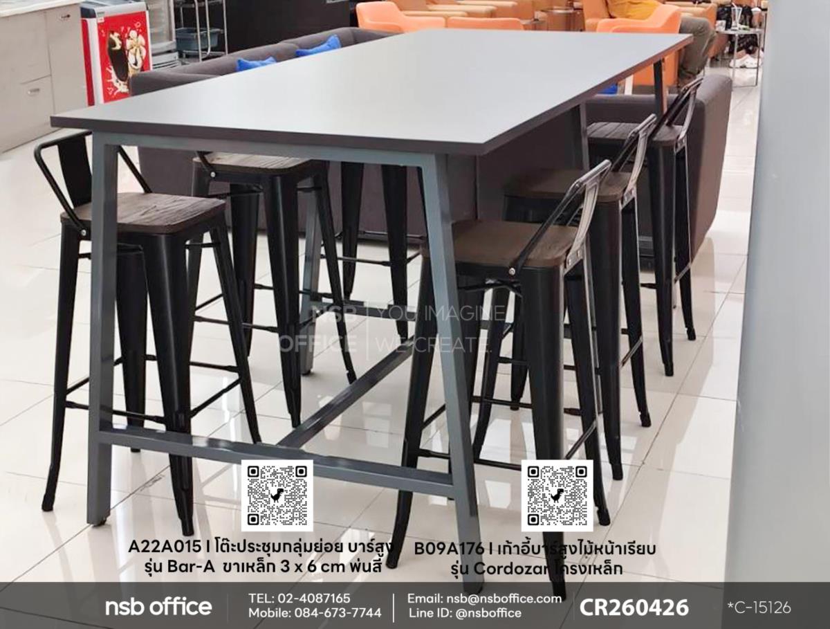 หากคุณกำลังมองหาโต๊ะประชุมที่เหมาะสำหรับการทำงานกลุ่ม โต๊ะประชุมกลุ่มย่อยบาร์สูงรุ่น Bar-A รหัสสินค้า A22A015 หน้า Top สีเทาเข้มของเราคือคำตอบที่คุณต้องการ! ด้วยดีไซน์ที่ทันสมัยและฟังก์ชันการใช้งานที่หลากหลาย โต๊ะนี้ช่วยเสริมสร้างบรรยากาศการทำงานที่กระตุ้นความคิดสร้างสรรค์และการสื่อสารที่มีประสิทธิภาพ เสริมการใช้งานคู่กับเก้าอี้บาร์สูงไม้หน้าเรียบ รุ่น Cordozar (คอร์โดซาร์) รหัสสินค้า B09A176 ที่ออกแบบมาเพื่อความสะดวกสบายและความสวยงามในเวลาเดียวกัน เก้าอี้นี้ไม่เพียงแต่ให้ความสบายขณะนั่งทำงาน แต่ยังเพิ่มความหรูหราให้กับพื้นที่ทำงานของคุณได้ดีอีกด้วยค่ะ