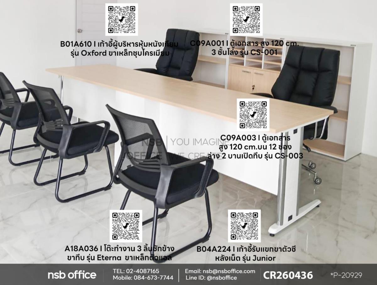 จัดส่งสินค้าเรียบร้อยแล้วค่ะ หน้างานนี้ลูกค้าได้เลือกซื้อโต๊ะทำงาน 3 ลิ้นชักข้างขาทึบ รุ่น Eterna (อีเทอร์นา) รหัสสินค้า A18A036 เสริมการใช้งานด้วยเก้าอี้รับแขกขาตัวซีหลังเน็ต รุ่น Junior (จูเนียร์) รหัสสินค้า B04A224 และเก้าอี้ผู้บริหารหุ้มหนังเทียม รุ่น Oxford (อ็อกซ์ฟอร์ด) รหัสสินค้า B01A610 และได้เลือกซื้อตู้เอกสาร สูง 120 cm. 3 ชั้นโล่ง รุ่น CS-001 รหัสสินค้า C09A001 และ ตู้เอกสาร สูง 120 cm. บน 12 ช่อง ล่าง 2 บานเปิดทึบ รุ่น CS-003 รหัสสินค้า C09A003 ไปใช้สำหรับใช้งานในหน้างานนี้ด้วยค่ะ
