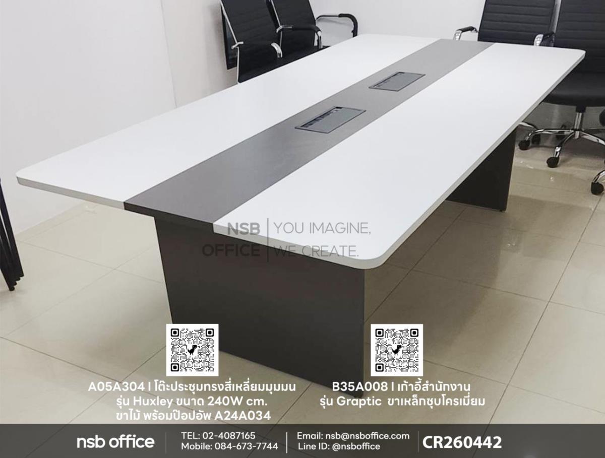 สำหรับหน้างานนี้เป็นโซนห้องประชุม ลูกค้าได้เลือกซื้อ โต๊ะประชุมทรงสี่เหลี่ยมมุมมน รุ่น Huxley (ฮักซ์ลีย์) รหัสสินค้า A24A034 รุ่นนี้จะมาพร้อมกับรางไฟอลูมิเนียม สามารถเลือกเป็นสีทูโทนได้ เสริมการใช้งานด้วยเก้าอี้สำนักงาน รุ่น Graptic (กราฟท์ทิค) รหัสสินค้า B35A008 ขาเหล็กชุบโครเมี่ยม ดีไซน์สวยงามทันสมัยมากๆค่ะ